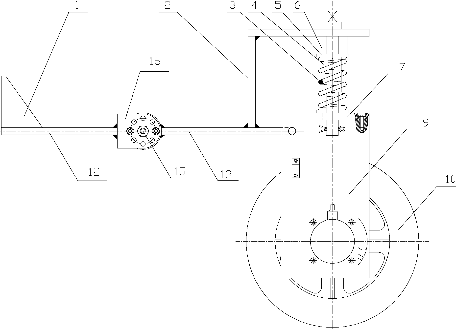 本实用新型涉及一种起重机靠紧轮装置,包括滚轮组件、预紧组件及连杆组件,所述滚轮组件包括滚轮、安装架、轴及编码器,所述预紧组件包括压缩弹簧、螺杆及螺母,通过旋转螺母使压缩弹簧收缩来控制滚轮与接触面的摩擦力,所述连杆组件包括双头螺杆、连接板及安装轴,所述安装轴固定在连接板内,所述双头螺杆包括第一螺杆及第二螺杆,所述第一螺杆、第二螺杆分别与安装轴旋转连接,所述第二螺杆与安装架固定连接。该起重机靠紧轮装置结构简单、安装方便、测量精度佳、适用范围广。