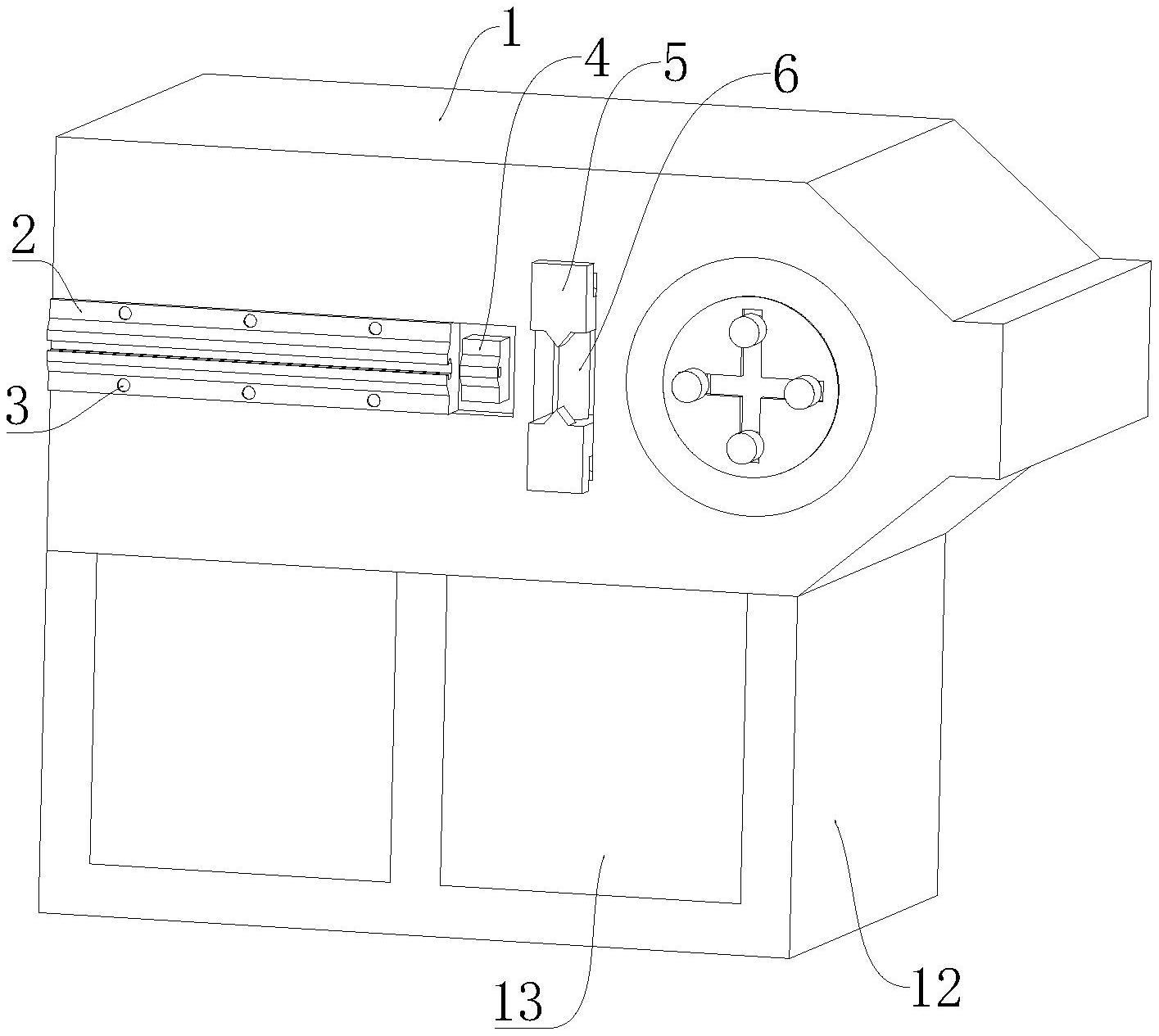 本实用新型公开了一种衣架线材全自动折弯成型机,包括成型机本体,所述成型机本体下端面固定连接有支撑座,所述支撑座前端面设置有储物槽,所述储物槽内腔通过转轴转动连接有箱盖,所述成型机本体前端面右部内设置有驱动电机,所述驱动电机通过输出轴转动连接有转动盘,所述转动盘前端面中部设置有四角卡盘;与现有技术相比,本实用新型的优点在于在对衣架生产用线材输送过程中可以对其进行矫直限位,便于后期弯折成衣架后品质更加精致,在对不同粗细的衣架生产线材进行弯折时,可以进行调节限位柱间距便于对衣架生产线材进行弯折。