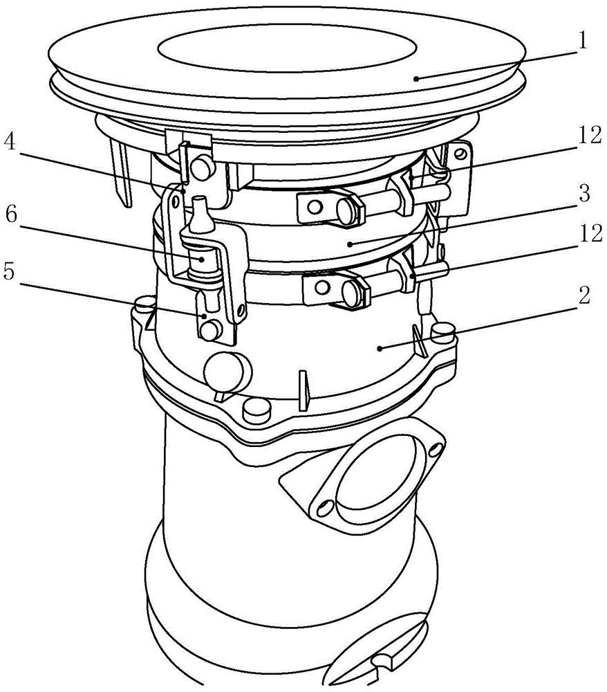 本实用新型属于垃圾处理器技术领域,特指一种垃圾处理器的减震结构,包括有落水口壳体与研磨罩,落水口壳体的下端口与研磨罩的上端口之间连接有减震密封圈,所述落水口壳体与研磨罩之间沿落水口壳体或研磨罩的轴向设有吸震组件。本实用新型通过在落水口壳体与研磨罩之间增设吸震组件,吸震组件内的硅胶柱体沿轴向固定在上连接平板与下连接平板之间,从而可有效吸收来自轴向上的震动,以达到进一步提升减震效果的目的,其结构简单,相比现有技术,减震效果显著。