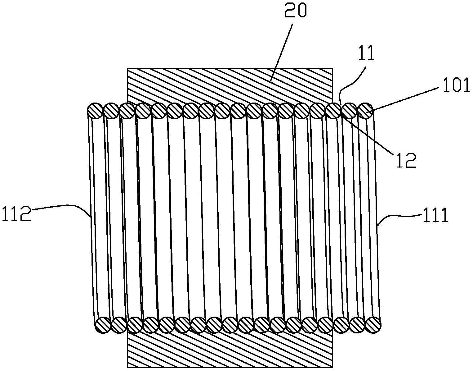 本实用新型提供一种金刚石线锯,包括线绳、串于线绳上的多个串珠以及设置于线绳外表面以固定串珠的包覆层;所述串珠包括基座和金刚石基体,所述基座为中空的管状本体,所述管状本体的外表面和内表面均具有螺旋沟槽,所述金刚石基体设置于管状本体的外表面,并填充于管状本体的外表面的螺旋沟槽内;所述包覆层填充于管状本体的内表面的螺旋沟槽内。能够在很大程度上提升金刚石基体与管状本体的在轴向方向上结合牢固性、以及管状本体和包覆层的在轴向方向上结合牢固性;进一步的提高金刚石线锯的切割能力。