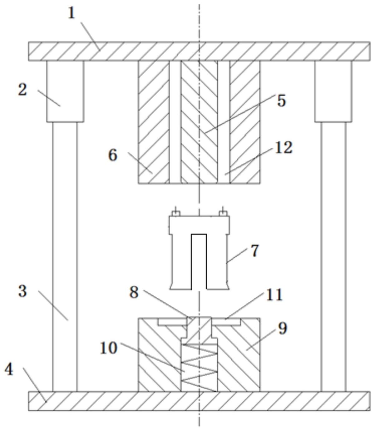 本发明提供了一种飞锤式离合器的快速组装装置,包括上模、下模、设置在上下模之间的飞锤架,所述上模的中央设置有开口朝下的圆形中空腔体,中空腔体的中央设置有飞锤架导向柱;所述下模的上表面中央设置有圆形凹槽,圆形凹槽的中央设置有可弹性升降的安装定位块;所述飞锤架由上下两部分组成,上部分上设置有与飞锤架导向柱适配的贯穿孔,下部分设置有与卡接槽,卡接槽与安装定位块及飞锤式离合器的飞锤片相适配。该组装装置能够实现飞锤式离合器的快速组装,生产效率提高,劳动强度降低,生产成本降低,占用生产场地缩小。