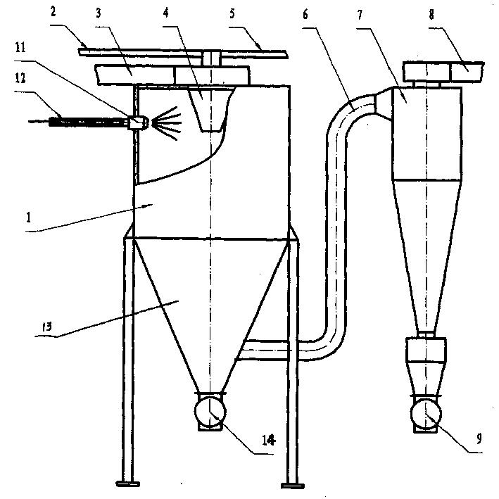 本实用新型涉及一种喷雾微粒干燥一体化装置。现有的同类产品无法生产出粒度均匀的造粒产品,本实用新型在现有技术的基础上增设了细粉扩散喷嘴,该细粉雾化喷嘴设置在干燥室上,在干燥室的下部形成气流分选区域,粗料出料口位于气流风选区域的底部,本实用新型结构设计合理,提高了造粒与干燥的效果,并集喷雾、造粒、干燥、风选于一体。