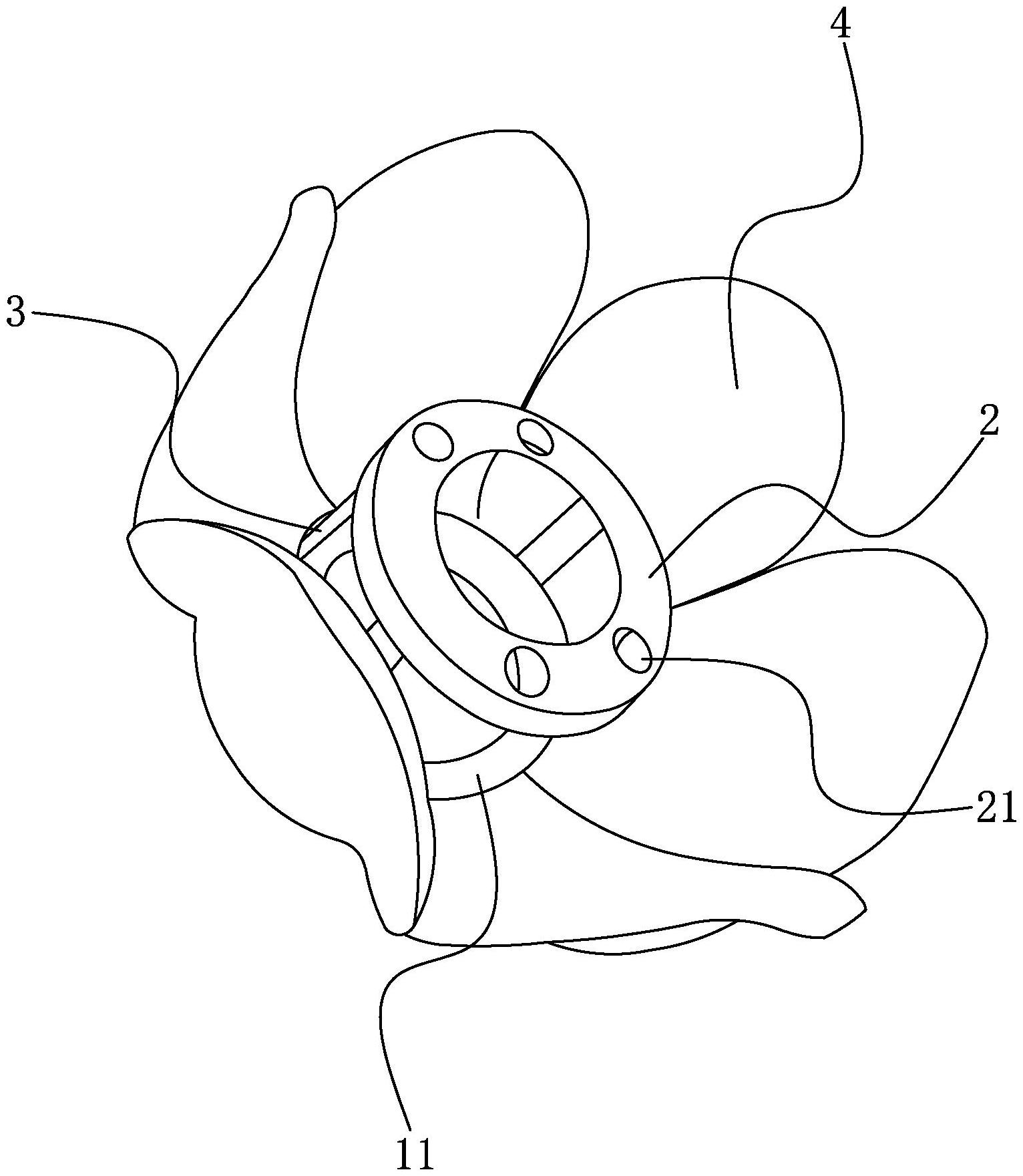 一种组合型装饰柱,包括多个子座,所述子座设有底座、固定环、支架和多个瓣片,所述瓣片连接在底座上,所述固定环与底座通过支架连接,所述固定环设有连接孔,所述底座设有安装孔,所述安装孔的直径大于固定环的直径,多个所述子座逐个堆叠设置,采用拼接的方式,降低整体铸造和整体运输的成本与不便利性,同时采用多个堆叠设置,方便调整装饰柱的高度。
