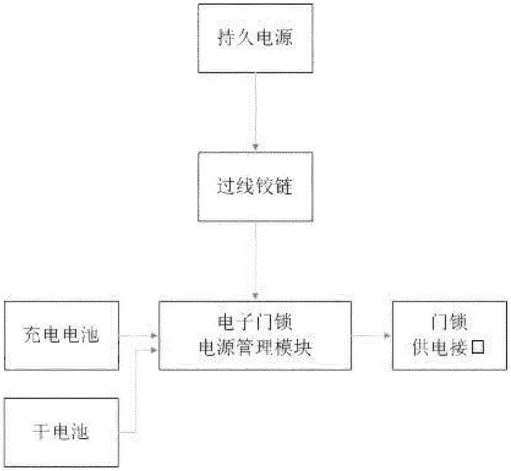 本实用新型涉及一种多供电系统的电子门锁,包括安装于门框外的持久电源供应单元、安装于门上的电子锁、电源连接线、电源管理模块和电池,电子锁设有门锁供电接口;持久电源供应单元与市电连接,通过电源连接线为电子锁供电;电源管理模块电源管理模块与电子锁、持久电源供应单元和电池电连接,用于切换持久电源供应单元和充电电池供电的控制电路;电池用于在持久电源供应单元断电时为电子锁供电。使用直供电及电池两种系统为电子门锁供电,利用电源管理模块改变电子门锁的供电方式,主要使用市电供电,少数时间使用电池供电,以应不急之需,充分地利用了电池和市电的作用,避免断电造成的麻烦,减少了电池的使用率,供电方式环保、方便。