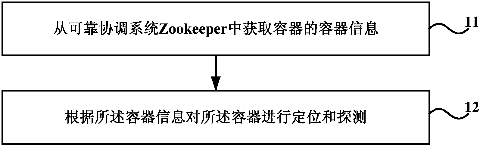 本发明实施例公开了一种容器管理方法及装置,其中方法包括:从可靠协调系统Zookeeper中获取容器的容器信息;根据所述容器信息对所述容器进行定位和探测,不仅减轻了通信设备的数据处理负担,降低了对中央处理器和内存的消耗,而且在对容器进行定位和探测时直接从可靠协调系统Zookeeper中获取容器的容器信息,避免了心跳造成的超时问题,不会对容器管理造成延迟,且不会随着容器的数量的增多,对消息传递造成瓶颈。