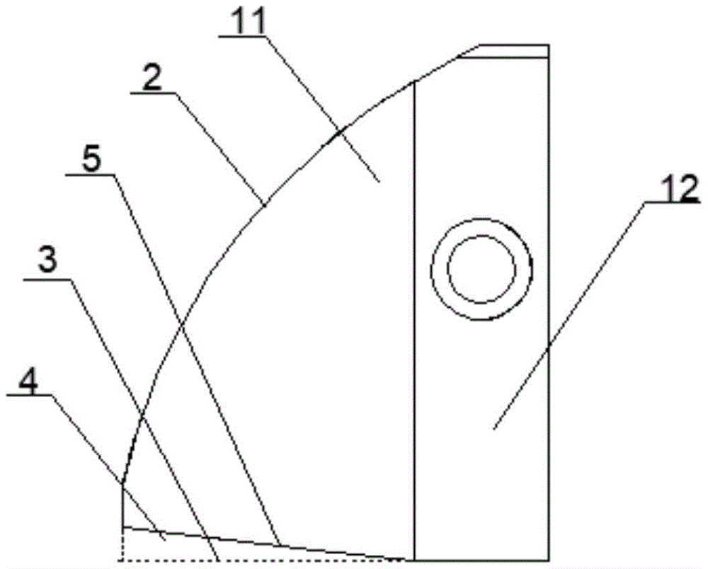 本实用新型公开了一种锁具的斜舌,涉及门锁领域。包括斜舌本体,所述斜舌本体包括用于与锁孔外壁配合的弧面和用于与锁孔配合的接触面,所述接触面上设置有缺口部,所述缺口部的上端面为斜面。本实用新型的一种锁具的斜舌在通用斜舌的基础上开设了缺口部,使门具制造厂在生产时,可直接将锁孔设置为通用的23cm,不用考虑预留间隙大小,而是通过缺口部的斜面对误差进行补偿,相对于在斜舌本体上设置补偿筋,锁厂可直接将本实用新型替换至锁盒上,通用性强,生产成本低。