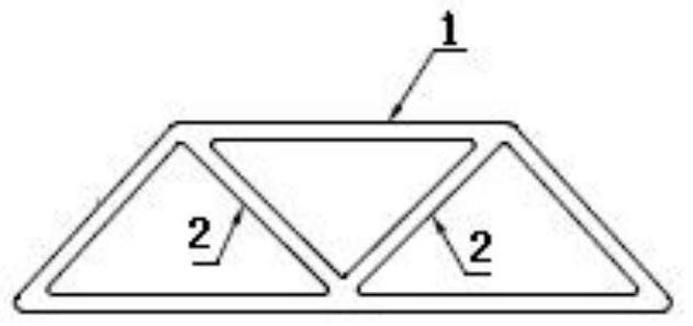 本实用新型公开了一种非金属材料轿壁加强筋,包括非金属材质的加强筋主体(1),且加强筋主体(1)的截面为封闭式结构;所述加强筋主体(1)内设有加强肋条(2)。本实用新型采用非金属材料挤出成型得到截面为封闭式的加强筋,并在加强筋内设置加强肋条,不仅具有质量轻、成本低、加工效率高、耐腐蚀(低损耗)等优点,还具有结构强度高、不易变形的优点。