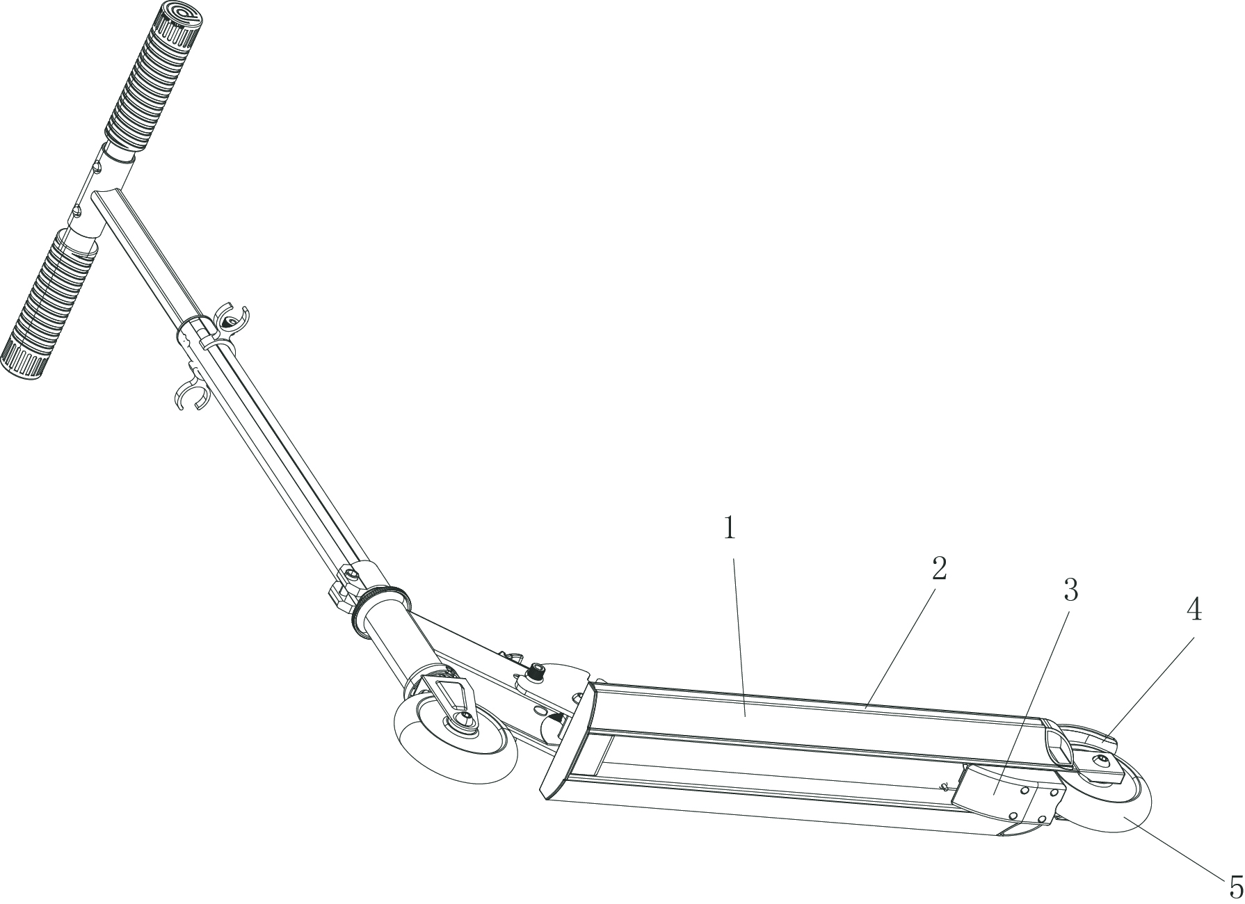 本实用新型公开了一种可自发电的滑板车,包括车体、踏板、后轮,所述踏板底部设置有自发电装置,所述踏板两侧设置有启动部,所述自发电装置包括滚轮,所述后轮与所述滚轮接触配合可以使所述启动部工作,所述踏板上还设置有可拆卸的挡泥板,所述踏板内设置有可活动凹槽块,所述凹槽块与所述挡泥板上的插杆配合可实现对所述挡泥板进行快速拆装。通过在踏板底部设置滚轮,通过滚轮与后轮后将电机产生的电流通过导线输送至灯带中,通过在踏板上设置可拆卸的挡泥板整个使用过程实现了原有的功能,并且整体的结构更加简单,操作方便,省时省力,使得压钳在夹紧工件时的工作效率大大提高。