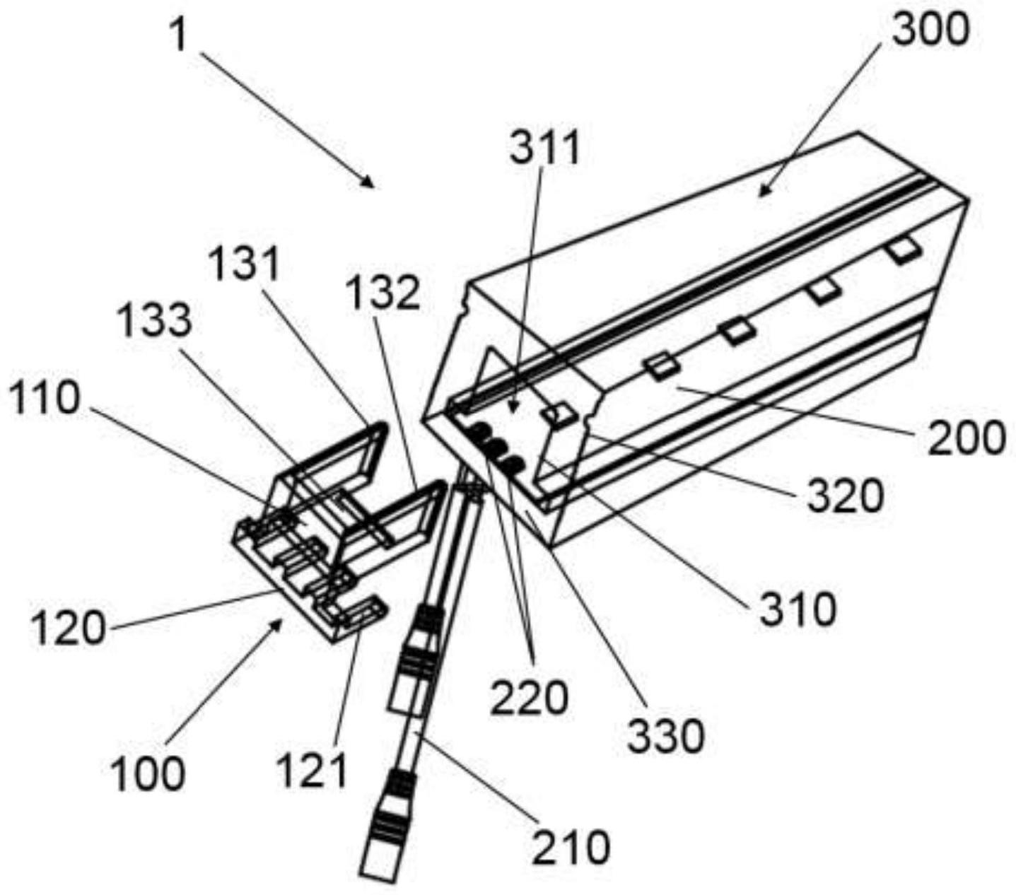 根据本实用新型的一方面,提供了一种灯带组件,包括:内壳体,具有内周壁和外周壁,内周壁在其内部限定中空部分,内周壁的外侧和外周壁的内侧之间限定凹部;灯带,固定到中空部分的底侧;电缆,焊接到灯带的端部;插接件,包括基部和从基部延伸的突出部,突出部的形状适于插入内壳体的凹部,当突出部插入所述内壳体时,基部至少部分地封堵中空部分,并且突出部还包括供焊接到灯带的电缆穿过的开口。根据本实用新型的第二方面,提供了一种包括前述灯带组件的人员输送装置,例如自动扶梯或自动人行步道。