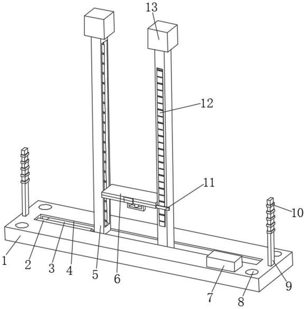 本实用新型公开了一种自动化面粉堆垛装置,包括安装板和堆垛机构;安装板:其上表面四角对称设有安装孔,安装板的上表面设有横向的导向槽,导向槽的左侧内壁设有电动推杆一,电动推杆一的伸缩端右端头处设有U形架,U形架与导向槽滑动连接,导向槽的前后内壁均设有限位滑槽,U形架的前后侧面底端均设有限位滑块,限位滑块均与同侧的限位滑槽滑动连接,U形架的竖向杆体上表面均设有电机;堆垛机构:设置于U形架的内部,电机的输出轴下端头均与堆垛机构的顶端固定连接;其中:还包括控制开关组,所述控制开关组设置于安装板的上表面,该自动化面粉堆垛装置,实现对面粉快速稳定的卸料工作,提高工作效率。