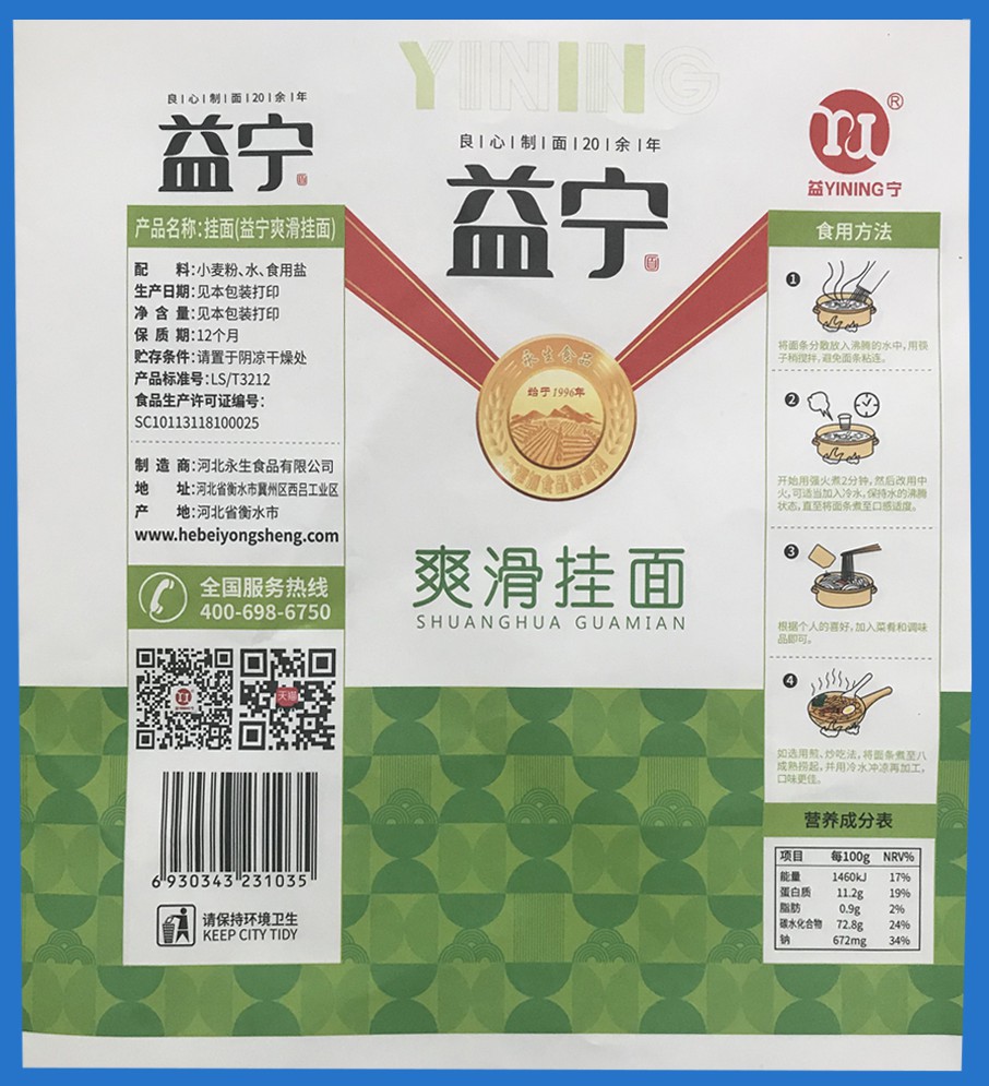 1.本外观设计产品的名称:挂面包装纸。2.本外观设计产品的用途:本外观设计产品用于食品包装。3.本外观设计产品的设计要点:形状与图案的结合。4.最能表明本外观设计设计要点的图片或照片:主视图。5.省略视图:其他视图无设计要点故省略。