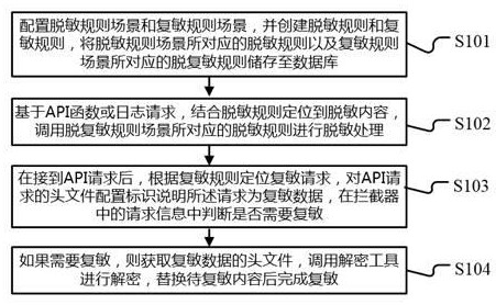 本发明提供一种针对敏感信息的脱敏复敏方法、系统及终端机,涉及数据安全技术领域,配置脱敏规则场景和复敏规则场景,并创建规则;结合脱敏规则定位到脱敏内容,调用脱复敏规则场景所对应的脱敏规则进行脱敏处理;复敏工具包用于在接到API请求后,根据复敏规则定位复敏请求,对API请求的头文件配置标识说明所述请求为复敏数据,在拦截器中的请求信息中判断是否需要复敏,如果需要复敏,则获取复敏数据的头文件,调用解密工具进行解密,替换待复敏内容后完成复敏。本发明使用轻量级对象表示模型JSON来定义脱敏对象和脱敏规则,使语法完备表达能力强,并且多语言都有解析工具,具有通用性和简便性,而且不绑定特定语言,适用性强。