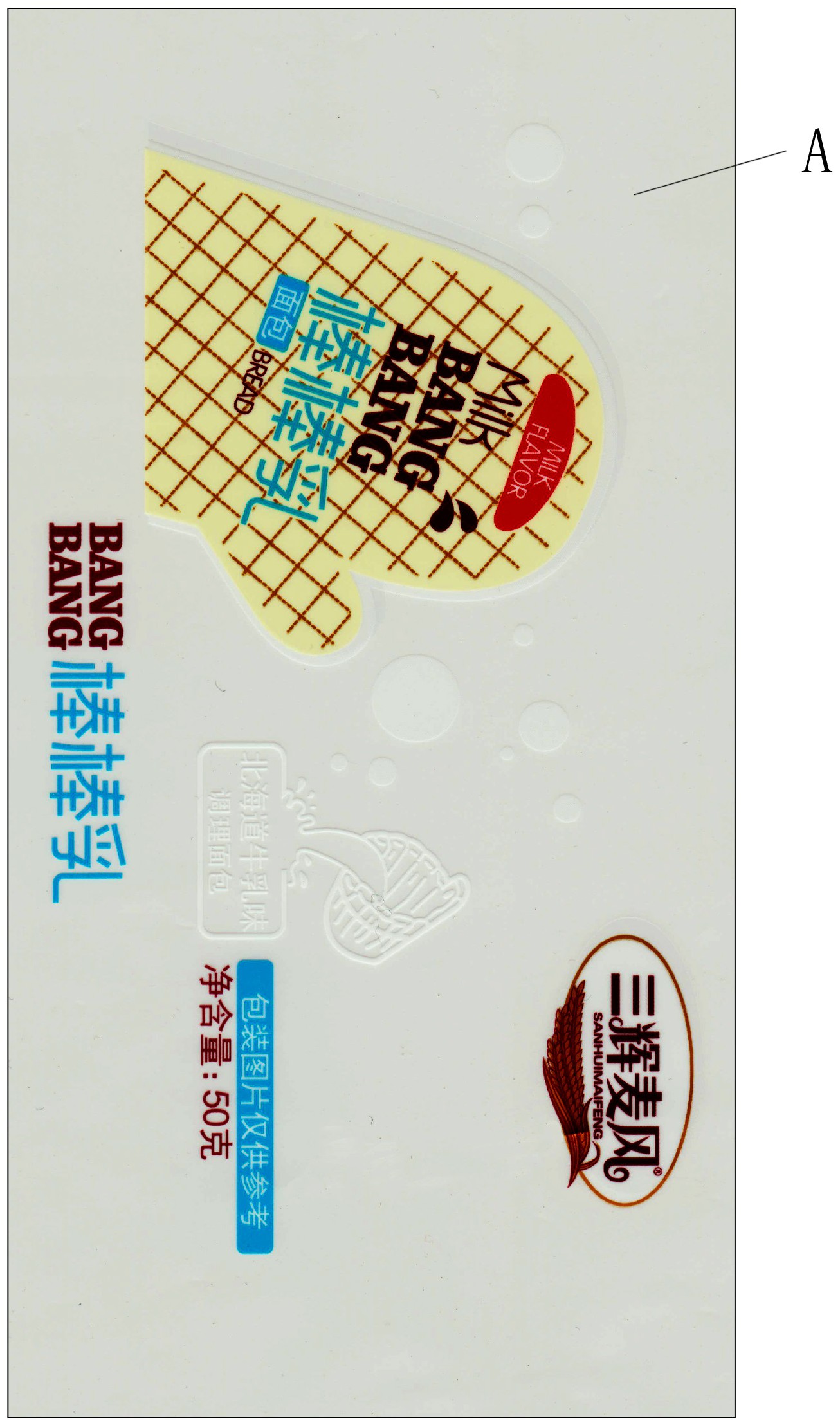 1.本外观设计产品的名称:包装袋(棒棒乳)。2.本外观设计产品的用途:本外观设计产品用于包装产品。3.本外观设计产品的设计要点:产品的形状、图案、颜色及其结合。4.最能表明本外观设计设计要点的图片或照片:主视图。5.省略视图:其他视图无设计特点,省略其他视图。6.请求保护的外观设计包含的色彩。7.A、B处为透明部分。
