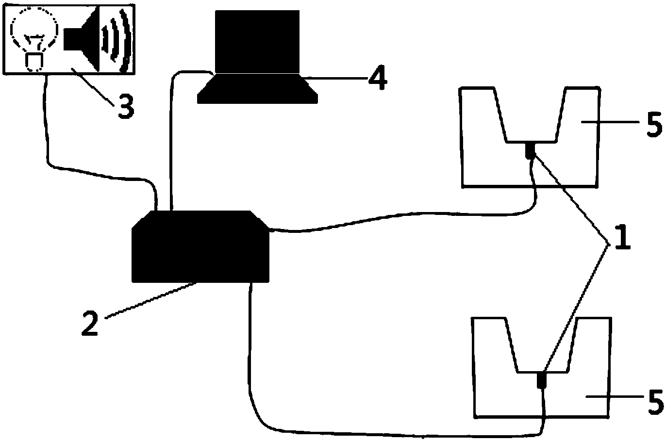 本实用新型公开了一种收卷架安装距离探测器,包括距离检测探头、主机盒及声光报警器,所述距离探测探头布置在收卷架上,距离检测探头和声光报警器分别通过导线与主机盒连接。本实用新型的探测器,不用改变吊车原有的结构,可以提高使用吊车安全性和员工操作吊车的稳定性,提醒员工在操作中适时变换档位,使卷材的转移更安全、可靠。本实用新型可用于卷材中转。