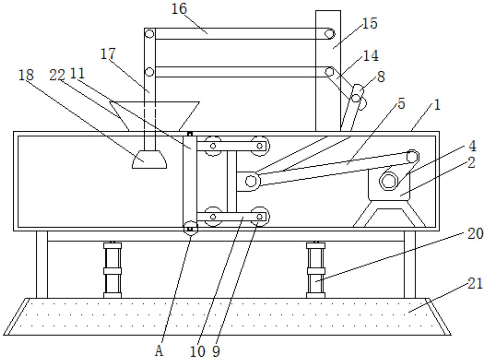 本实用新型公开了一种具有升降功能的托板打包机,包括机身和推板,所述机身的内部安装有双向电机,且双向电机的输出端连接有传动轴,所述传动轴的外表面固定有摇臂,且摇臂的另一端连接有第一传动杆,所述第一传动杆的另一端连接有第一连接件,且第一连接件的左侧连接有第二连接件,所述第二连接件的前后两端均连接有辅助件,且辅助件的一侧连接有滑轮,所述推板设置于辅助件的左侧,且推板的上下两端均固定有滑块,所述滑块的外表面连接有滑槽。该具有升降功能的托板打包机通过设置后的摇臂能够在双向电机和传动轴的相互配合下进行转动,如此能够带动第一传动杆进行转动,从而推动推板向左侧移动,实现自动化流程。