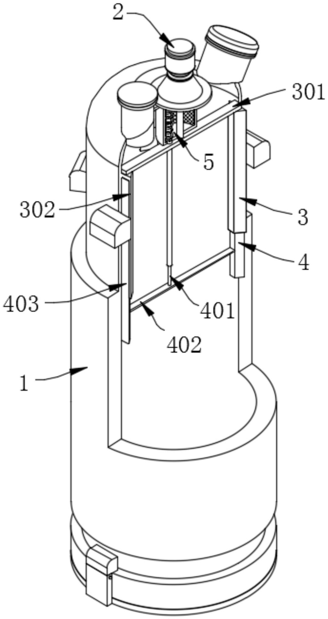 本实用新型公开了一种直筒型中药提取罐,属于制药机械技术领域,包括直筒型提取罐本体、安装于直筒型提取罐本体表面的驱动结构,以及对直筒型提取罐本体内壁进行清理的清理结构和调节结构;防护结构,设置于清理结构表面,并且对调节结构进行防护;本实用新型,通过设置清理结构和调节结构,在长期的使用过程中,直筒型提取罐本体内壁会粘附污垢,操作人员调节电推杆,电推杆进行伸长时,通过推动板带动两个伸缩刮板在两个清理板表面进行移动,从而调长清理板和伸缩刮板之间的长度,驱动结构带动清理板和伸缩刮板进行旋转时,能对直筒型提取罐本体内壁的污垢进行刮动,从而对其内部粘附的强力污垢进行清理。