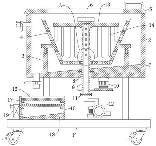 本实用新型公开了一种淫羊藿清洗装置,属于中草药加工技术领域。淫羊藿清洗装置,包括:移动底座;清洗箱,通过支杆安装在所述移动底座上;箱门,转动连接在所述清洗箱上;放置网篮,插接在所述清洗箱内的支板上;空心管,转动连接在所述清洗箱上,且上端延伸至所述放置网篮内;本实用新型可以自动对放置网篮内的淫羊藿进行拨动清洗,替代了人工,提高了清洗效率,当对淫羊藿清洗完成后,可以一边对淫羊藿进行拨动,一边对淫羊藿进行吹风烘干,从而可以对放置网篮内每个位置的淫羊藿都可以进行烘干,有效的提高了对淫羊藿烘干的均匀性,防止有少量的淫羊藿没被烘干,使其在存放过程中发生腐败及霉变的风险,有效的提高了该装置的实用性,适于推广使用。