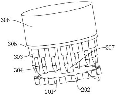 本实用新型公开了一种中药口服液体制剂灌装设备,属于灌装设备领域。一种中药口服液体制剂灌装设备,包括:加工台,所述加工台上对称设置有运输机构;底板,所述底板设置在加工台上;卡接盘,所述卡接盘设置在底板上,所述卡接盘上设置多个卡槽,多个所述卡槽呈圆周等距排列在卡接盘上;顶板,所述顶板设置在卡接盘远离底板的一端,且所述顶板与卡接盘之间设置有连接轴;本实用新型有效的防止在集中灌装使玻璃瓶碰撞造成的损失,同时有效的增加了设备的灌装效率。