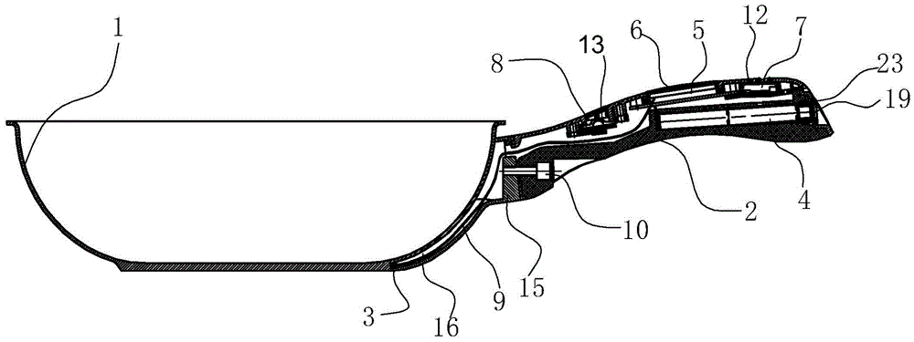 一种智能温度显示语音锅,其包括有锅体、连接在锅体上的手柄以及温度检测元件、主控制系统、电源,温度检测元件的输出端连接到主控制系统的一输入端,其特征在于:所述主控制系统包括微控制单元,手柄的顶面中部位置布设有一用于显示锅体温度的液晶显示屏,该液晶显示屏通过显示驱动器与微控制单元的一输出端相连接,在手柄顶面后部设有用于语音提醒锅体温度的喇叭,喇叭通过语音芯片与微控制单元的另一输出端相连接,在手柄顶面前部设有与微控制单元的另一输入端相连接的按键开关。本实用新型采用智能的微控制单元,在手柄上设置显示屏,能更加直观地显示温度,且信息更加丰富;另外设置升压模块、省电电路,从而节省电耗;设置蓝牙模块,能通过蓝牙模块从无线客户端上看到信息,使用更加便捷、具有较强的实用性能。