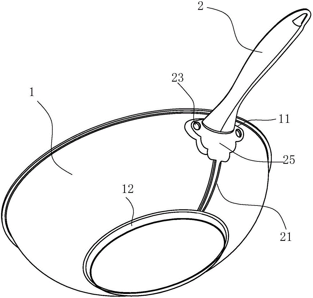 一种锅具的温度采集装置,其包括有锅体、手柄及温度检测元件,其特征在于:所述手柄的前部上端与锅体相连接,手柄的前部下端成型有与锅体的外侧壁紧贴的带有走线槽的贴合连接部,温度检测元件设置在贴合连接部的走线槽的末端,并在锅体底部的边缘位置,它使得结构更加简单合理,解决了复合板拉伸很难在锅壁进行造型的缺陷,并且温度检测准确,装配简单方便,可满足铝合金、复合钢或铁材料拉伸成形的锅具的温度检测,适用范围广。