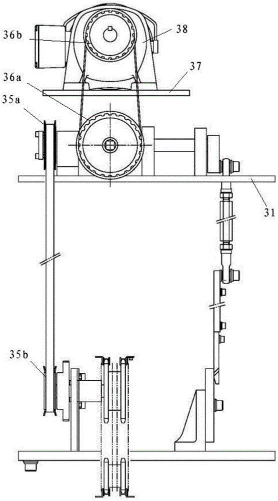 本发明公开了一种鸡爪切制机用传动机构,具有机架,机架上设置安装平台,安装平台上设置由动力机构驱动的主轴,安装平台上并位于主轴的前方设置第一、第二、第三及第四转轴,第一、第二、第三及第四转轴由左向右排列,并由主轴驱动,第一、第二、第三及第四转轴的前端分别设置第一、第二、第三及第四偏心轮,第一、第二、第三及第四偏心轮分别设置第一、第二、第三及第四连杆;安装平台上并位于主轴的后方设置由主轴驱动的主动皮带轴,主动皮带轴的后端设置主动皮带轮,机架的下方沿着前后方向设置从动皮带轴,从动皮带轴后部设置与主动皮带轮连接的从动皮带轮。本发明结构设计合理,能够同时带切制机的输送机构和刀具机构动作,切制效率高。