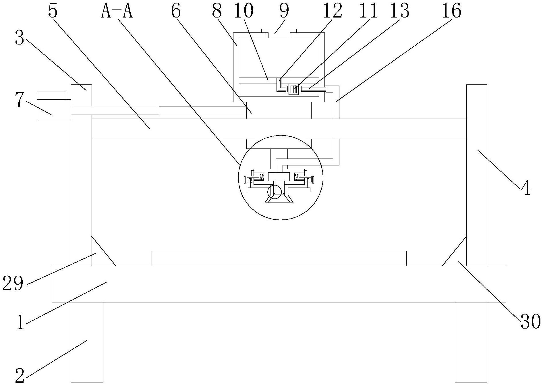 本实用新型公开了一种便于维护喷头的地板加工用喷漆装置,包括底板,底板底部的四角处均固定连接有支腿,底板顶部的左右两侧分别固定连接有第一竖板与第二竖板,第一竖板与第二竖板之间的顶部通过顶板固定连接,顶板的表面滑动连接有滑块,第一竖板左侧的顶部且对应滑块的位置固定连接有电动推杆。本实用新型通过拆卸板、连接管、拆卸槽、挡板、伸缩杆、活动板、弹簧、移动板、固定板、第一限位块和第二限位块的相互配合,使地板加工用喷漆装置便于维护喷头,工作人员花费极少的时间及精力就可将喷头拆卸下来,减轻了工作人员的工作负担,有利于喷头维护工作地进行,加快了地板喷漆工作的进程,给使用者带来极大的便利。