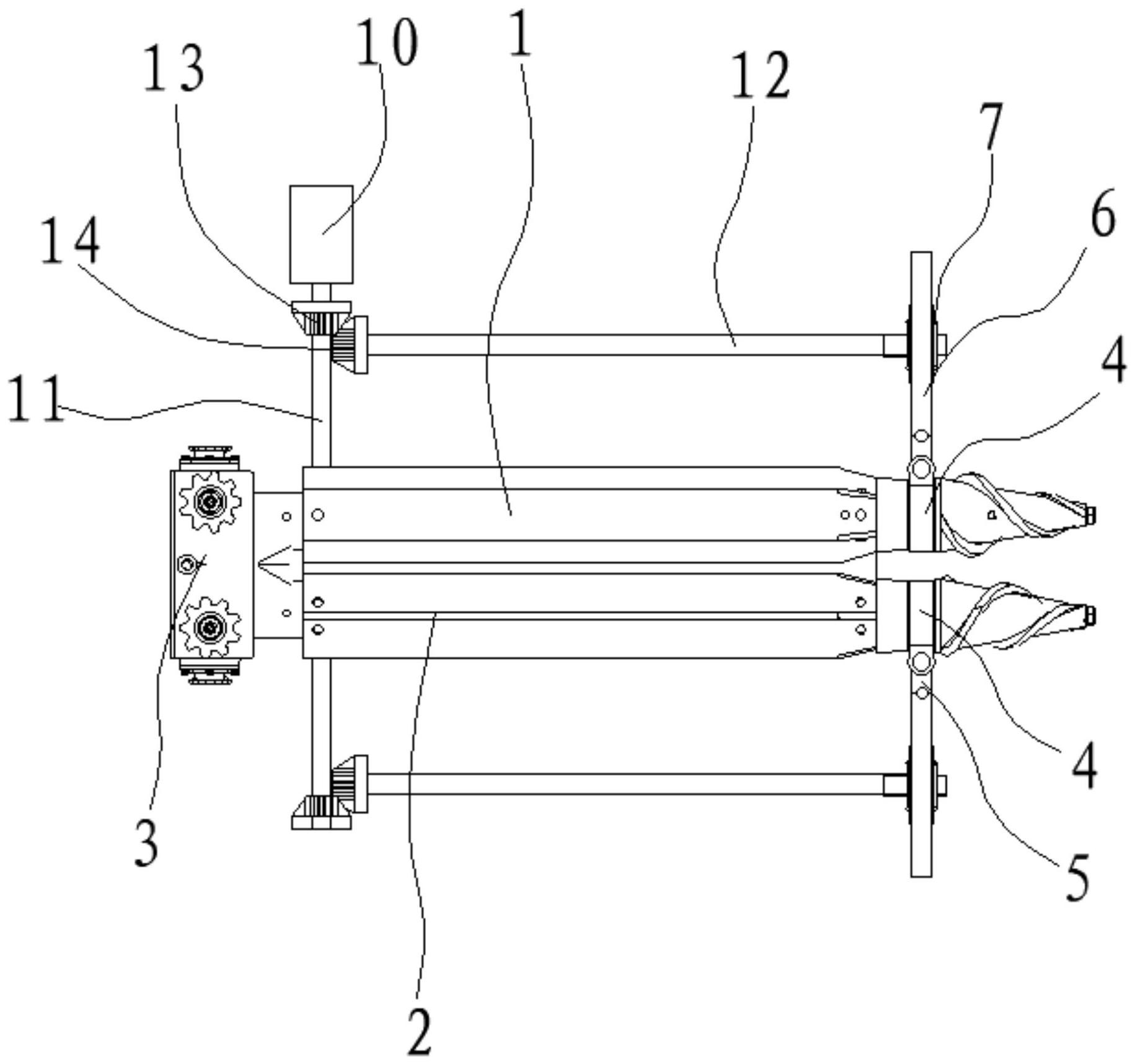 本实用新型涉及农业机械设备技术领域,尤其涉及一种间隙可调的拉茎辊组件,包括并列设置的第一拉茎辊和第二拉茎辊,所述第一拉茎辊的第二端上和所述第二拉茎辊的第二端上均套有转动套,两个所述转动套相互远离的外壁上均铰接连接杆的一端,每个所述连接杆的另一端均铰接第一连接件的一端,所述第一连接件旁设有与第一连接件啮合连接的第二连接件,所述第二连接件与连接件驱动机构传动连接用于在连接件驱动机构的带动下轴向转动以带动所述第一拉茎辊的第二端和所述第二拉茎辊的第二端相互远离或靠近。本实用新型的有益效果是:实现第一拉茎辊和第二拉茎辊间隙的快速调整,既能降低机手的劳动强度,又能节省调整时间同时提高用户收益。