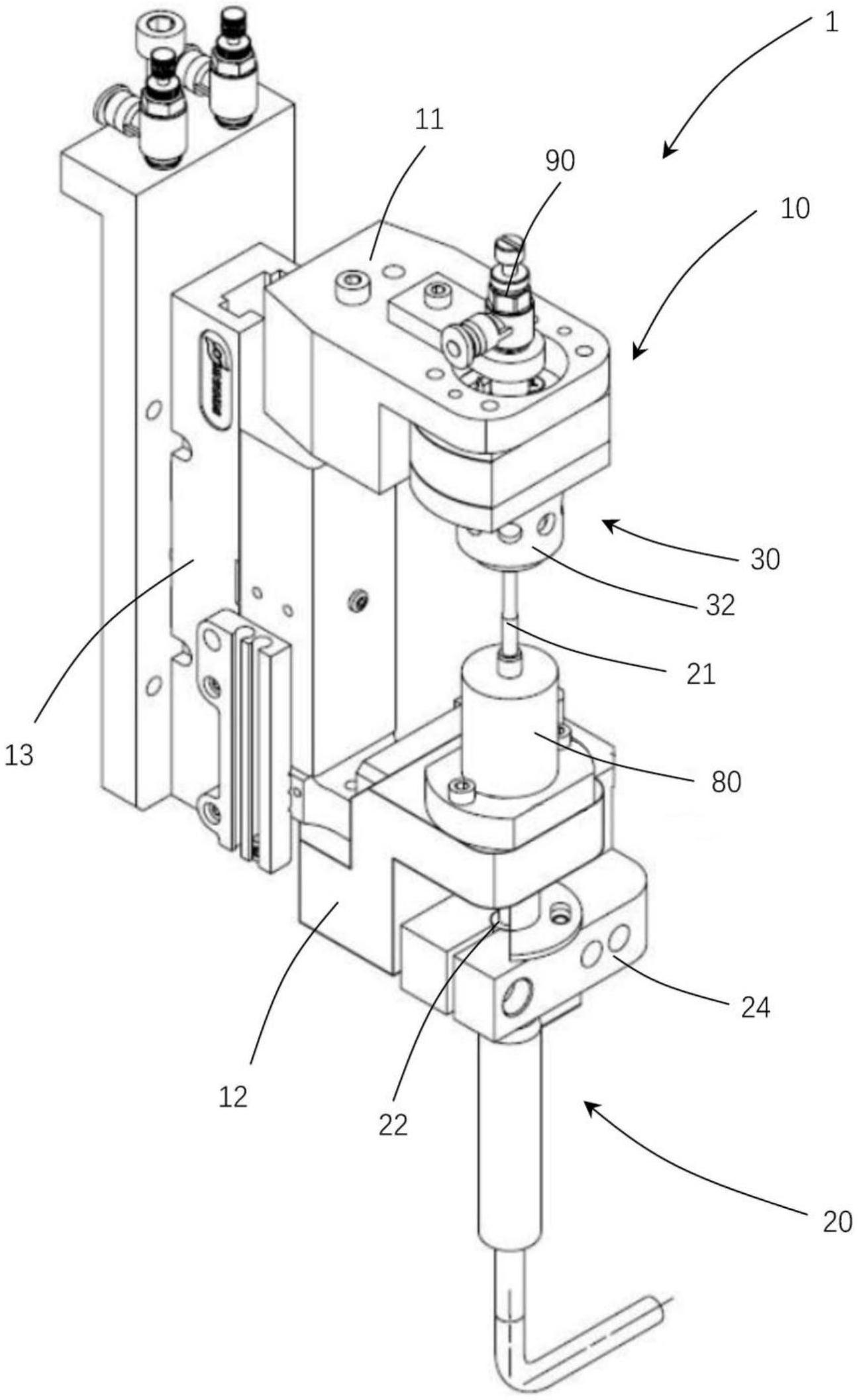 本实用新型涉及一种电磁阀行程测量设备。该电磁阀行程测量设备包括:检测夹具,所述检测夹具包括:夹具上部件、夹具下部件以及夹具驱动装置,夹具上部件和夹具下部件能够在第一位置与第二位置之间进行开合运动;行程传感器,行程传感器包括探针和探针承载部,行程传感器还配设有行程传感器操纵装置,行程传感器操纵装置设置用于在第二位置中将探针运送到电磁阀处以实施测量;线圈装置和与线圈装置电连接的供电设备,其中,线圈装置构成为用于能在第二位置中围绕电磁阀的带有动铁芯的部分布置。由此,能够以高效且可靠的方式实现自动化的电磁阀行程测量。由此,能够减少节拍时间。此外,能够提高测量精度。此外,能够节省成本。