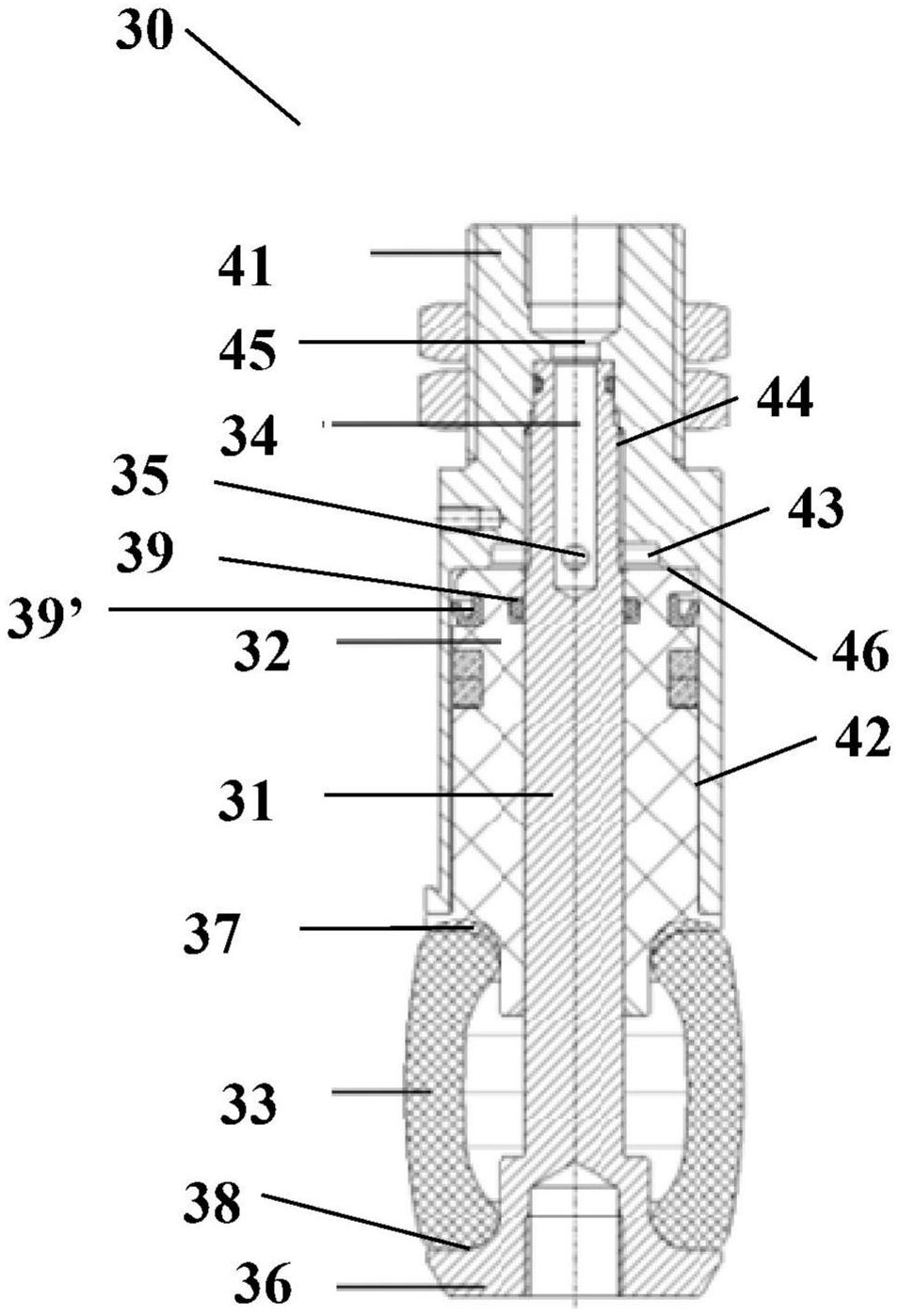 本实用新型公开了用于带孔零件的充气抓手,所述充气抓手包括具有输气管的伸长的抓手主体、以及位于抓手主体的远端部处的扩张组件。所述扩张组件包括:壳体,所述壳体的近端部固定至抓手主体的远端部、并连接输气管;中心柱,所述中心柱的近端部固定至壳体;弹性圈,所述弹性圈被套设在中心柱上、并且抵靠在中心柱的远端部处;和活塞,所述活塞被套设在中心柱上、并且位于弹性圈的近侧,其中,在来自输气管的气体压力的推动下,活塞被构造成沿中心柱向远侧移动,以压迫弹性圈径向扩张,从而接合带孔零件的孔壁。所述充气抓手使用寿命长,并且不会发生零件不慎脱落的问题。