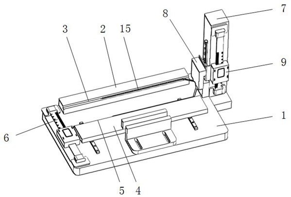 一种用于检测电枢U型线的检具,包括一个底座,底座上设置有一个固定座,固定座上表面的前侧设置有一个第一凹槽,底座上、固定座的前方设置有一个移动滑台,移动滑台与底座构成平行于底座宽度方向的滑动副,移动滑台的上表面的后侧设置有一个第二凹槽,底座上、固定座的左方设置有第一电子数显卡尺,第一电子数显卡尺的长度方向平行于底座的宽度方向,固定座的左方设置有一个立座,立座的左侧面设置有一个移动压块,立座的前侧面设置有一个第二电子数显卡尺。本实用新型的一种用于检测电枢U型线的检具,结构简单,安装方便,可快速将U型线定位,测量出U型线的各项线型检测内容,降低了U型线的测量难度,提高了工作效率,适用于规模生产。