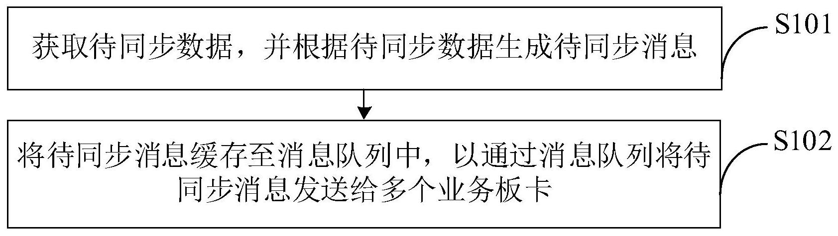 本申请提供一种消息入队方法及装置,应用于数据通信领域,其中,消息入队方法包括:获取待同步数据,并根据待同步数据生成待同步消息;将待同步消息缓存至消息队列中,以通过消息队列将待同步消息发送给多个业务板卡;其中,主控板卡与多个业务板卡之间的多个连接共用消息队列。在上述方案中,在主控板卡上实现一个消息队列,每一个主控板卡与业务板卡之间的连接均公用该消息队列,从而在进行数据同步的过程中,可以基于待同步数据仅生成一条待同步消息,并将这一条待同步消息缓存至消息队列中。由于消息队列中针对一条待同步数据仅需要缓存一条待同步消息,因此,降低了实现数据同步的开销。