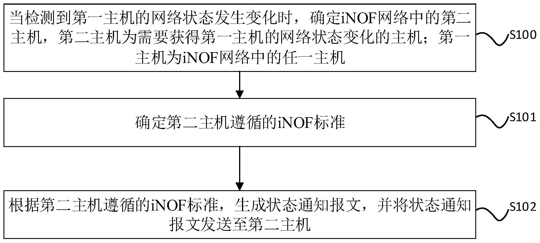 本发明涉及数据通信技术领域,提供了一种报文发送方法、装置、交换机及可读存储介质,应用于智能无损存储iNOF网络中的交换机,交换机与iNOF网络中的多个主机通信连接,所述方法包括:当检测到第一主机的网络状态发生变化时,确定iNOF网络中的第二主机,第二主机为需要获得第一主机的网络状态变化的主机;第一主机为iNOF网络中的任一主机;确定第二主机遵循的iNOF标准;根据第二主机遵循的iNOF标准,生成状态通知报文,并将状态通知报文发送至第二主机,本发明实现了iNOF网络中交换机与遵循不同iNOF标准的主机之间的自动兼容。