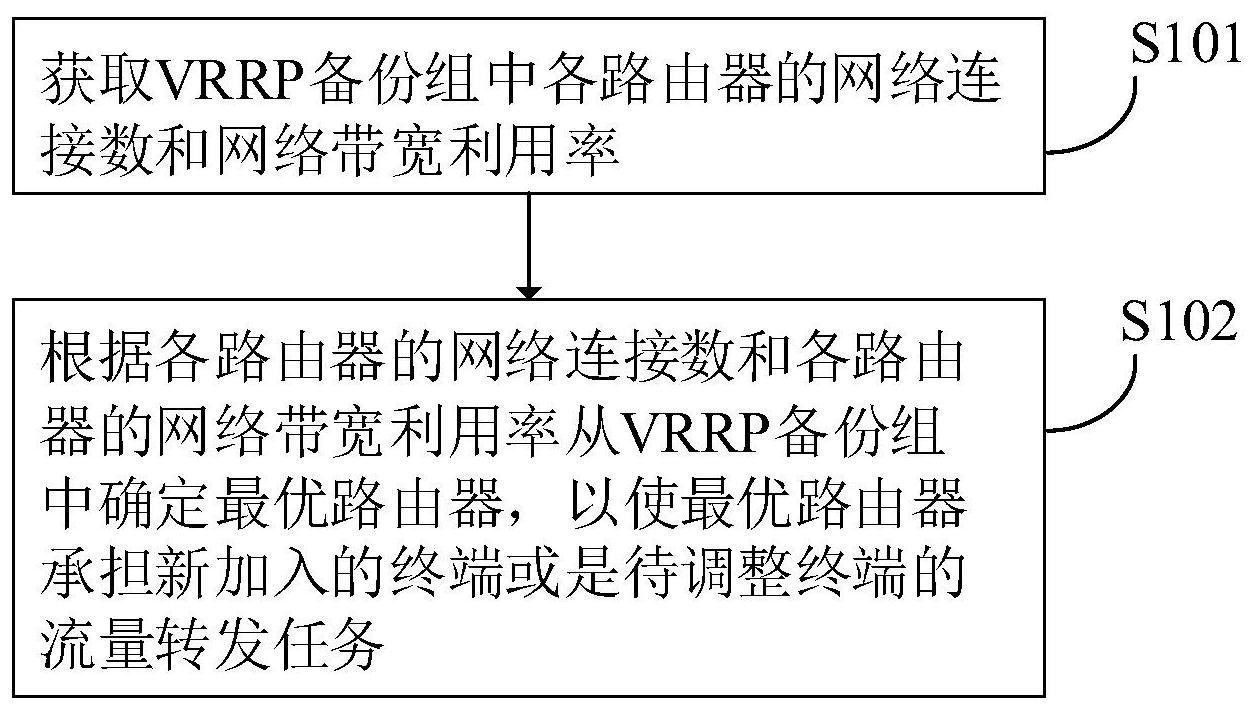 本申请提供一种负载均衡方法、装置、电子设备和计算机可读存储介质,所述方法包括:获取VRRP备份组中各路由器的网络连接数和网络带宽利用率;根据各路由器的网络连接数和各路由器的网络带宽利用率从VRRP备份组中确定最优路由器,以使最优路由器承担新加入的终端或是待调整终端的流量转发任务,使得VRRP备份组中各个路由器的网络连接数和网络带宽利用率较为接近,从而使得网络环境中各个终端的资源相对均衡。