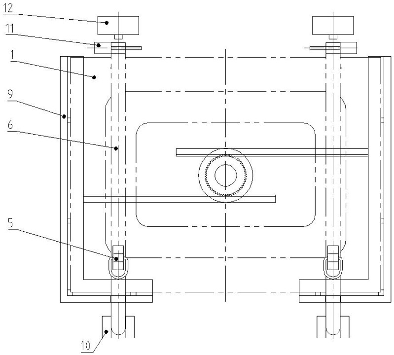 一种用于铁路货车下侧门折页装配的工装,属于下侧门折页成形技术领域,该工装包括门板定位框和折页定位块,门板定位框包括两个相对设置的定位边框,两侧定位边框之间设置齿轮,定位边框内侧的中部分别设置齿条;折页定位块活动设置于水平部的外侧,折页的一端插装于折页定位块中,折页的另一端活动设置定位销,定位销的轴线方向与折页的轴线方向相互垂直,定位销的外侧对应设置纵向施力装置。本实用新型结构简单,操作方便,门板采用自动对中的定位方式,在折页φ29mm孔穿入定位销定位时,沿折页纵向施加一个朝向门板的力消除折页孔与定位销之间的间隙,使φ29mm孔与定位销贴合。