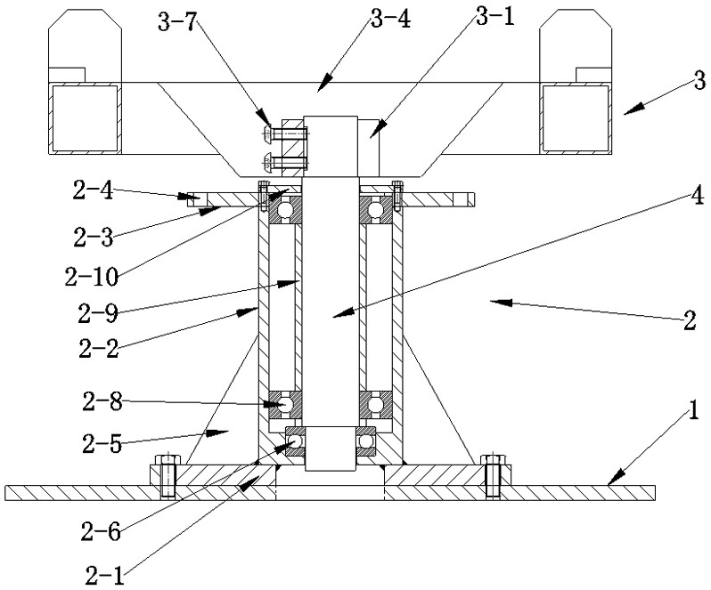 一种重型零件用支撑旋转装置,属于重型零件加工技术领域,解决现有重型零件加工、组装过程中存在的操作不便、安全隐患大、工作效率低等技术问题。本实用新型通过以下技术方案予以实现:一种重型零件用支撑旋转装置,其中:包括固定底板、支撑底座、放置托架和转轴;所述支撑底座设在固定底板顶面中部;所述支撑底座包括安装底板、竖直设在安装底板顶面中部的套筒和设在套筒顶面圆周方向的定位环;所述套筒内腔上部和下部各设有一组深沟球轴承;所述放置托架设在支撑底座上方,所述放置托架底面中部设有旋转座。本实用新型的技术方案具有结构简单、设计合理、操作便捷、安全隐患低、工作效率高等优点。