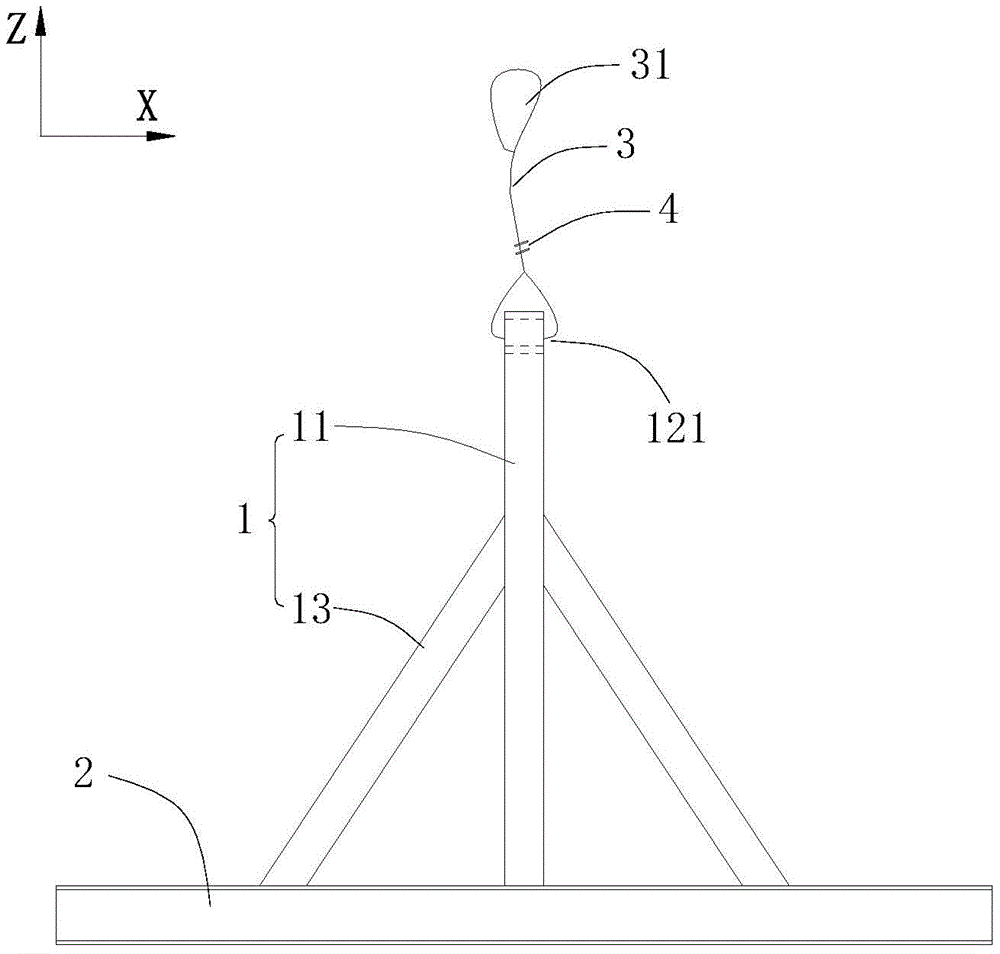 本实用新型提供了一种吊装装置,包括悬挂件和承载件,所述承载件位于所述悬挂件下端且与所述悬挂件连接,所述承载件适于支撑铁路货车上体钢结构的下侧门,所述承载件设有第一孔结构,所述第一孔结构沿竖直方向设置,所述第一孔结构适于与所述下侧门的折页配合,以使所述折页的下端插入。本实用新型在起吊下侧门时,首先将下侧门的折页的下端对准并插入与之配合的第一孔结构中,此时,下侧门由承载件支撑,由于承载件与悬挂件连接,悬挂件不易摆动,从而使下侧门起吊更加稳定,提高安全性,同时,无需穿插钢丝绳,可以减少工作量,提高生产效率。