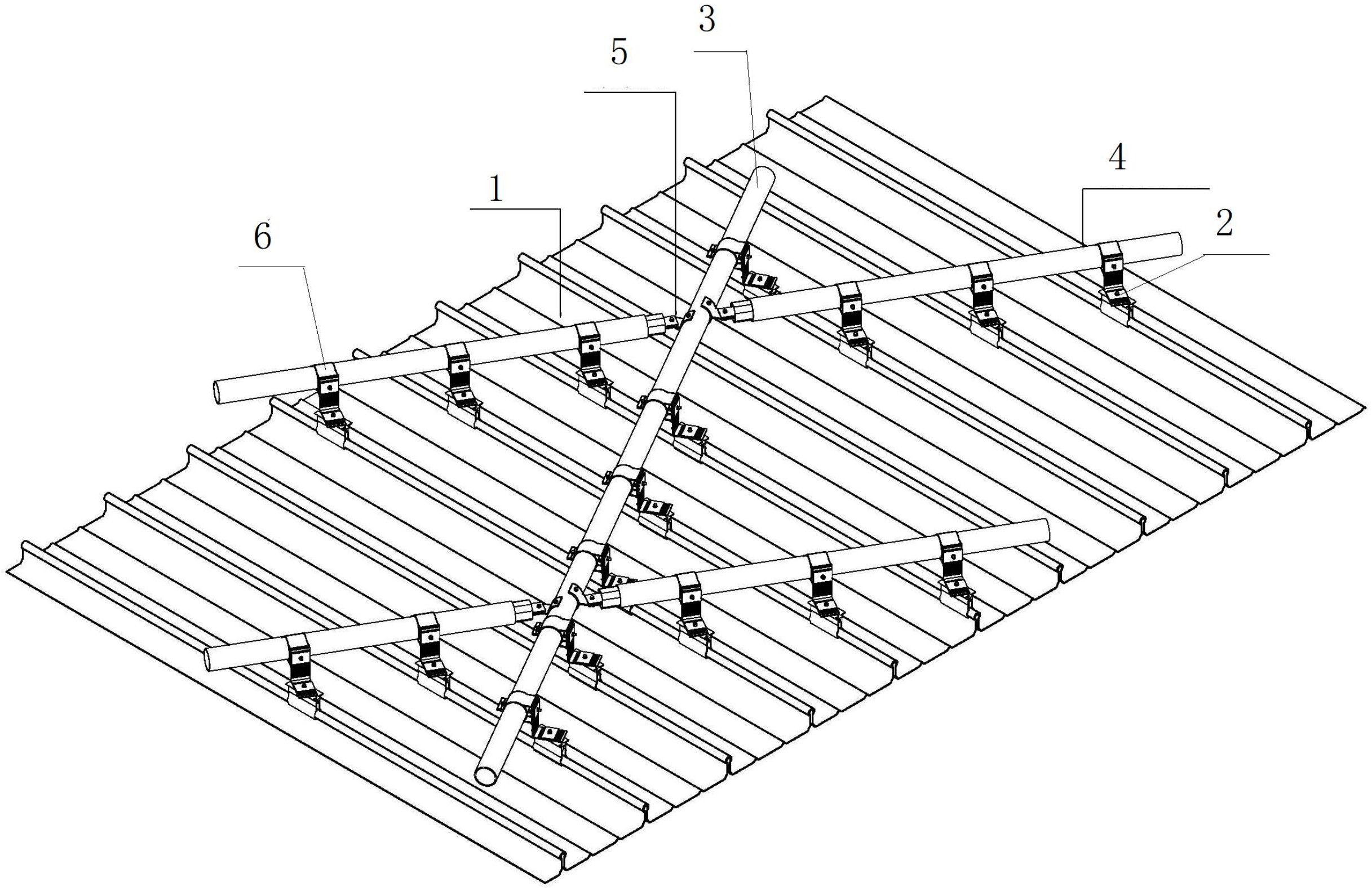 本实用新型公开了一种横纵铝龙骨新连接形式,包括:屋面板、一组转接组件、第一圆管主龙骨、一组第二圆管主龙骨和一组转接系统,所述转接组件设于屋面板上,所述第一圆管主龙骨设于屋面板上,所述第二圆管主龙骨相对设于第一圆管主龙骨两侧,其靠近第一圆管主龙骨一端通过转接系统与第一圆管主龙骨和第二圆管主龙骨均通过转接件与转接组件连接。本实用新型中所述的一种横纵铝龙骨新连接形式,其结构简单,设计合理,通过转接组件以及转接系统的设置,让其能够根据施工的实际需要对第一圆管主龙骨和第二圆管主龙骨安装角度进行调节,让其能够根据施工的需要自如调节,让其更好的满足施工的需要。
