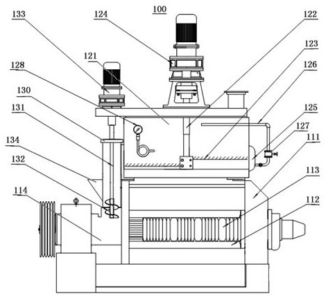 一种圆排榨油机,涉及榨油机技术领域,其包括榨油单元、蒸炒单元和螺旋进料机。该圆排榨油机针对不同原料的特性差异,其可以先将原料在蒸炒单元中进行蒸炒、调质处理,再通过螺旋进料机输送至榨油单元进行榨油,从而能够极大地提高榨油机对不同原料的适应性,并提高了原料的出油率。该圆排榨油机的结构简单,使用方便,功能丰富,具有较佳的实用价值。