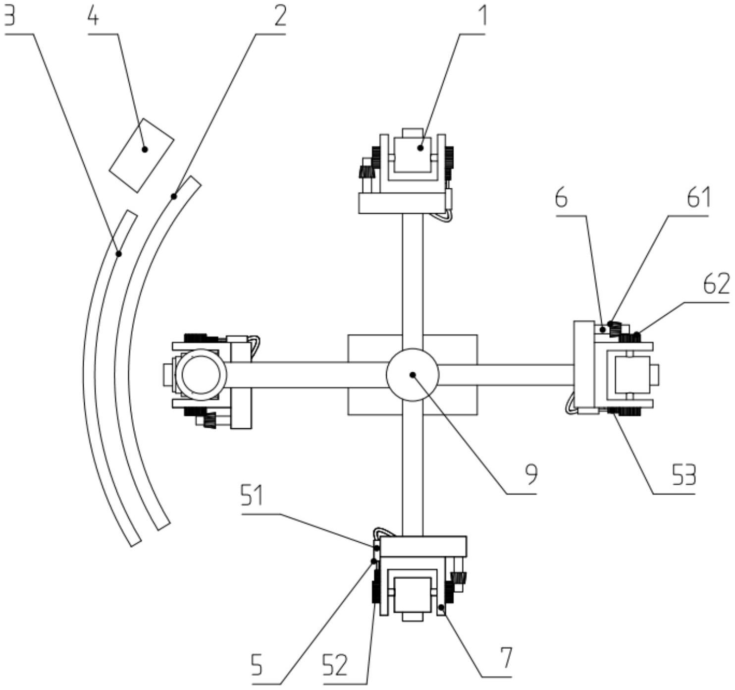 本实用新型涉及玻璃生产设备技术领域,公开了一种涨紧装置,包括液滴容纳器、液滴传输轨道、加热机构和冷却机构;所述液滴容纳器用于容纳玻璃熔液液滴;所述加热机构包括火焰喷射轨道,所述火焰喷射轨道上设有数个火焰喷射口;所述液滴传输轨道用于供液滴容纳器滚动;所述液滴容纳器的水平运行轨迹与液滴传输轨道平行;所述冷却机构设于火焰喷射轨道的尾部,冷却机构包括输水管,所述输水管接通有冷水;所述输水管的出水口设于液滴传输轨道上方。本实用新型能够缓冷玻璃熔液液滴,能够防止液滴在传输过程中变形的同时保持一定的液滴流动性,为后续加工创造了较好的前提条件,整体结构设置简单,运作有效。