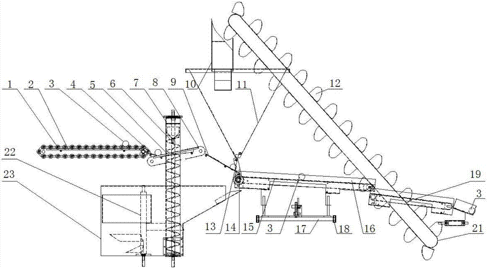 本实用新型公开了一种自动皮蛋包泥裹糠机,包括依次设置的蛋品定位输送装置、淋泥装置和裹糠装置,其中,蛋品定位输送装置包括用于调整皮蛋滚动姿态及定位的波浪形滚轴以及用于驱动波浪形滚轴转动的第一驱动装置;淋泥装置包括用于输出泥浆的绞龙、安装于绞龙上的出泥嘴、多根平行设置用于传送皮蛋的搁蛋杆、以及驱动该搁蛋杆移动的第二驱动装置;裹糠装置包括用于存放糠粉的糠斗、位于该糠斗下方且可往复运动以对皮蛋进行裹糠的裹糠盘、位于裹糠盘内以传送皮蛋的第一传送带、连接淋泥装置和裹糠盘的滤泥支架、位于裹糠盘尾端的第二传送带以及位于该第二传送带尾端的出蛋栅格。本实例提出的自动皮蛋包泥裹糠机,降低了工人的劳动强度。