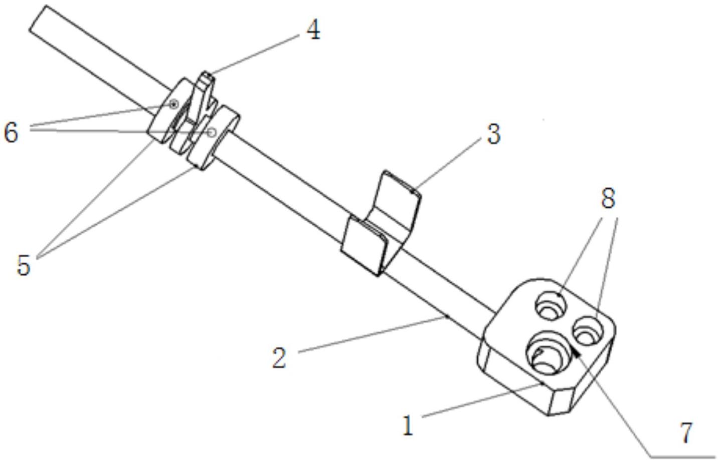 本实用新型涉及农用机械技术领域,公开了一种可调式弹簧定长测量辅具,包括轴杆、两个限位块、测量块、锁紧件。本实用新型具有以下优点和效果:将弹簧一端的销嵌入在块体的定位孔内,皮带张紧机构的张紧臂多是金属材质,块体上的磁铁吸附在张紧机构的张紧臂上,使工作人员不必一直用手扶着轴杆的一端。导正件的两个导正板分别挡在弹簧的两侧,使轴杆与弹簧大致处于平行的位置。两个限位块的位置分别对应弹簧伸长长度的上下极限,比对测量块与弹簧另一端的位置,可快速判定弹簧伸长长度是否在规格范围内。