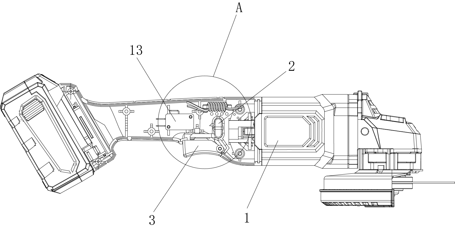 本实用新型公开了可双向解锁的开关自锁结构,包括设置在机体上的自锁按钮和启动按钮,自锁按钮横向贯穿机体且自锁按钮的两端均可向机体的内部横向活动,自锁按钮和启动按钮上设置有相配合的锁定件,自锁按钮不受按压状态下,通过相配合的锁定件,使启动按钮无法按压,自锁按钮向左侧或右侧按压的状态下,使相配合的锁定件形成错位,进而使启动按钮可被按压。在机体上设置可双向按压的自锁按钮,提高在使用电动工具时的便捷性,在固定块两侧设置空心状并通过条形柱与固定块的配合,使得在按压自锁按钮的任意一端时均可使锁定件从锁定状态转换为解锁状态,结构简单且实用,成本低。
