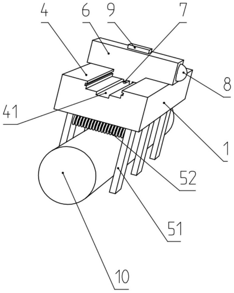 本实用新型涉及脚手架监控技术领域,公开了一种用于附着式脚手架的全方位监控轨道,包括轨道体和监控小车;所述轨道体的第一侧面上设有连接部,轨道体的第二侧面上设有滑轨;所述第一侧面与第二侧面不相对;所述监控小车与滑轨滑动连接;所述连接部包括数组夹爪,所述夹爪用于稳固连接脚手架与轨道体;所述监控小车包括车体,所述车体底部设有滑轮,车体内部设有供电电池和驱动监控小车移动的电机;所述车体上还设置有温度传感器、风速传感器、振动传感器和全景摄像头。本实用新型能够多方位、全面监控脚手架周边环境情况及脚手架稳固情况,有助于排查确认脚手架使用过程中的安全隐患。
