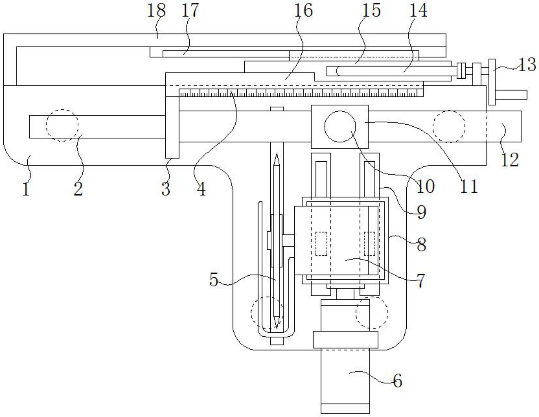 本实用新型公开了一种铜管定长切断装置,包括:工作台,所述工作台底部通过支撑脚进行支撑固定,且工作台的侧壁上焊接固定有固定框,同时固定框的内壁上螺接安装有导向轨,工作台上活动安装有安装框,且安装框的内部通过机座安装有切割电机,同时切割电机的输出轴与切割刀片固定连接,并且工作台上放置有铜管结构。该铜管定长切断装置,在伸缩气缸的作用下,使得切割刀片一边转动一边移动,可对铜管结构进行切割工作;铜管结构的端部通过定长板进行限位,定长板在工作台上的位置可通过转动转手进行驱动横向移动,实现对铜管结构的定长切割工作。