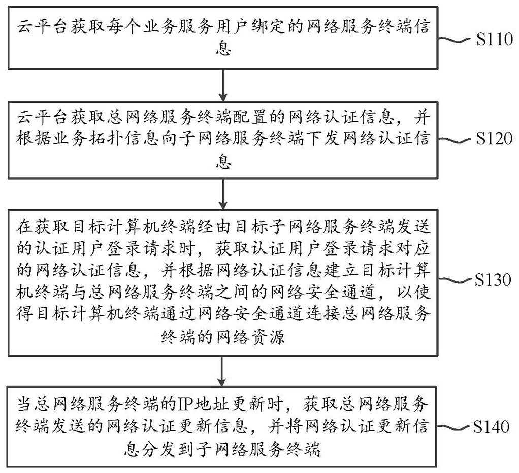 本发明提供一种智能化异地的网络资源互通部署方法、系统及云平台,在获取总网络服务终端配置的网络认证信息后,可以根据业务拓扑信息向子网络服务终端下发网络认证信息,并且能够根据经由目标子网络服务终端发送的认证用户登录请求对应的网络认证信息,建立目标计算机终端与总网络服务终端之间的网络安全通道,以使得目标计算机终端通过网络安全通道连接总网络服务终端的网络资源,当总网络服务终端的IP地址更新时,获取总网络服务终端发送的网络认证更新信息,并将网络认证更新信息分发到子网络服务终端。如此,通过云平台和网络服务终端即可构建智能化异地网络安全通道,并且能够自动完成网络认证信息的更新、分发和认证工作。