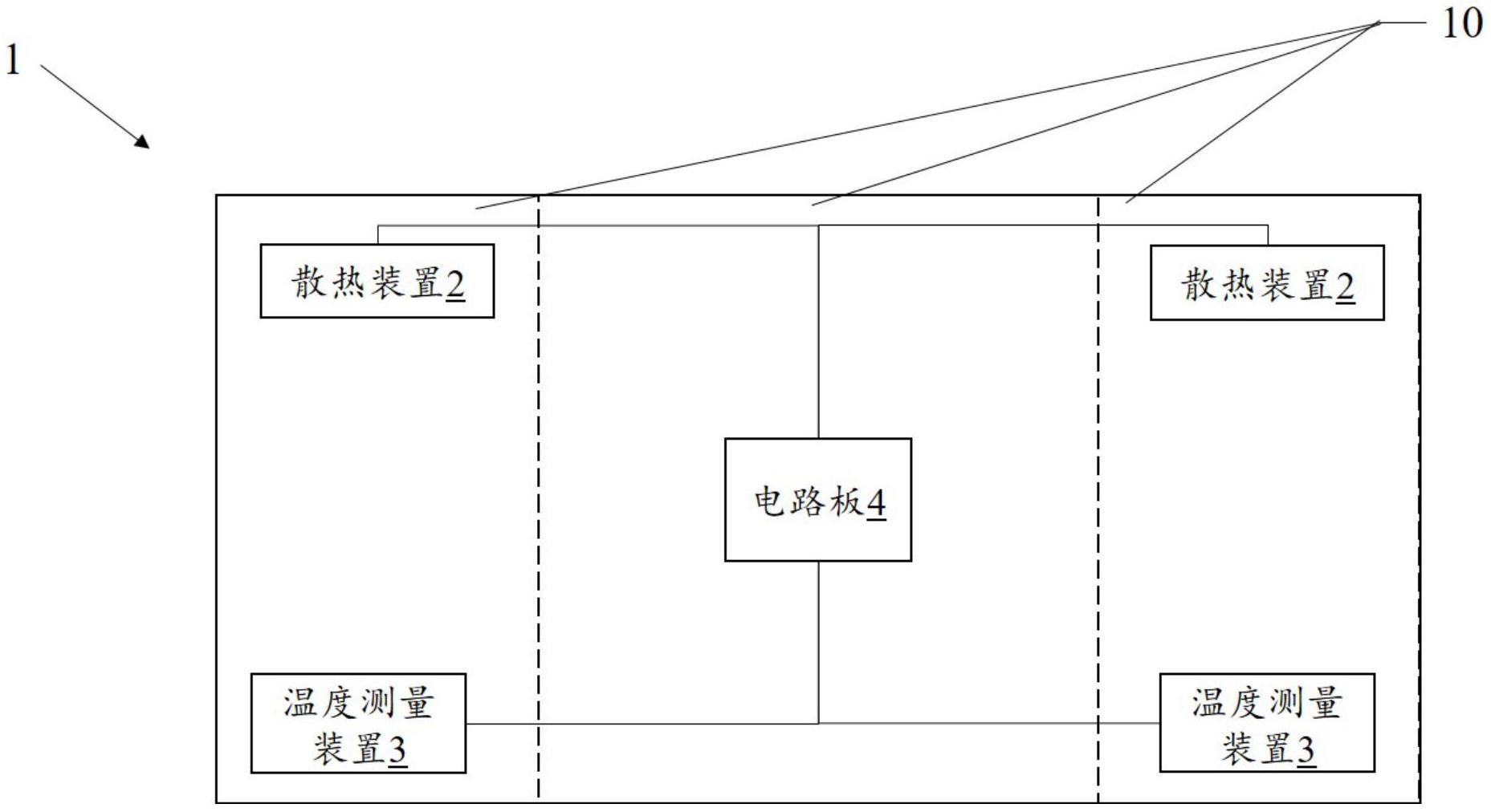 本实用新型涉及分析仪器技术领域,具体地涉及到一种离子阱质谱仪,包括:多个散热装置,对应于设置于离子阱质谱仪内部的多个区域,用于对多个区域分别进行散热;多个温度测量装置,分别设置于多个区域,用于测量多个区域的温度;电路板,电路板分别与多个散热装置以及多个温度测量装置电性连接。本实用新型中的离子阱质谱仪通过对离子阱质谱仪内部的多个区域分别进行独立的温度测量和精准的温度控制,确保离子阱质谱仪内部各个区域都能够保持合理的温度,同时避免散热装置无效工作,减少非必要的功耗和噪音的产生。