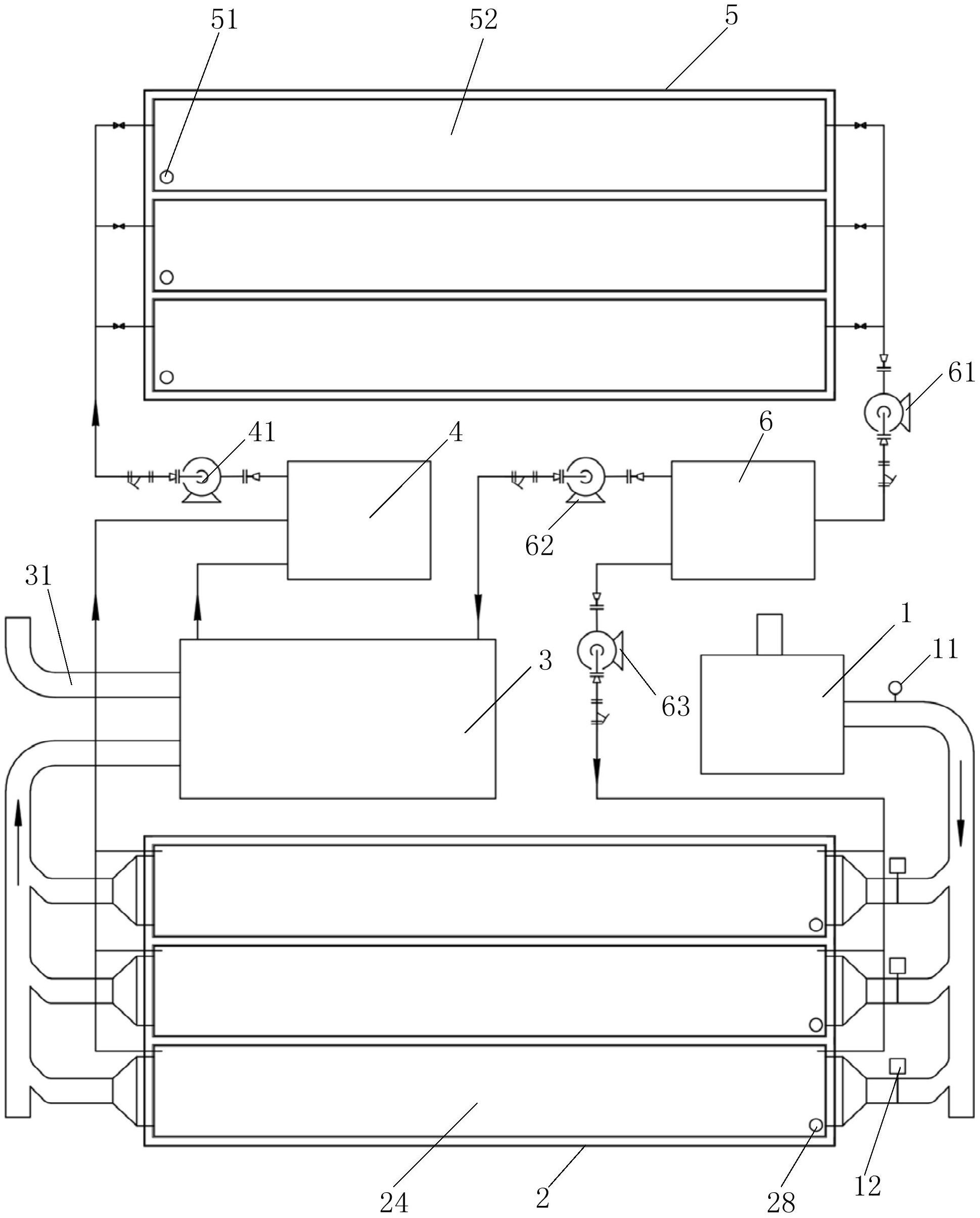 本实用新型公开了一种管桩产品养护系统,包括热风炉、第一养护池、气水换热器和第一回收模块;所述热风炉用于产生初级养护拆模后的管桩高温养护所需的高温热风;所述第一养护池与所述热风炉连接,用于对初级养护拆模后的管桩进行高温热风养护;所述气水换热器与所述第一养护池连接,用于对第一养护池排出的高温热风与所述气水换热器中的水进行气水热交换,得到高温热水;所述第一回收模块与所述气水换热器连接,用于对经所述气水换热器处理后的高温热水进行回收,回收后的热水可以用于管桩初级养护。采用本实用新型,养护效果好,维护成本低,有效提高能量利用率,从而降低生产成本,提高生产效率。
