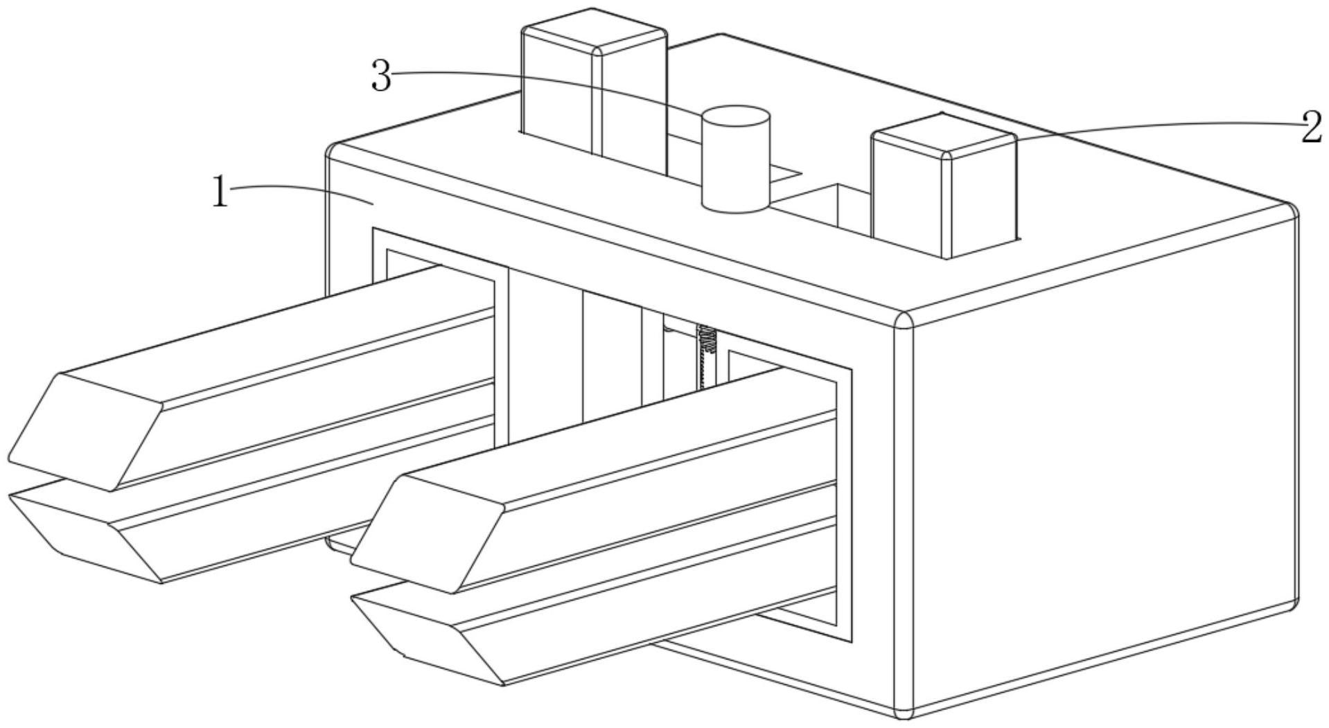 本实用新型公开了拉链机的夹持装置,涉及拉链机技术领域。该拉链机的夹持装置,包括:安装框;夹持机构,夹持机构共设置有两组,每组夹持机构均包括动力部件、固定框、两个固定夹和限位部件,固定框滑动嵌设于安装框的上下内壁之间,动力部件设置于固定框上。该拉链机的夹持装置,通过拧动转动块可以使连接杆转动,从而带动固定锥形齿轮转动,通过安装锥形齿轮与固定锥形齿轮相互啮合,使安装锥形齿轮带动其中一个安装双向螺纹杆转动,通过同步带的传动使同步轮带动另一个安装双向螺纹杆转动,使螺纹筒在安装双向螺纹杆上移动,带动两个固定框移动,调节两组固定夹的位置,可以对不同规格的拉链进行固定,增加夹持装置的实用性。