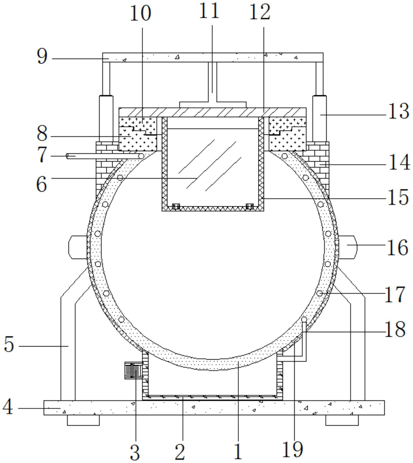 本实用新型公开了一种低能耗高温高压蒸练一体化装置,包括罐体和基座,所述罐体的顶部安装有密封机构,且密封机构包括两个固定安装于罐体两侧外壁的弧形固定块以及固定安装于罐体顶端的固定密封圈,且两个弧形固定块的顶部外壁均固定安装有液压杆,两个所述液压杆的顶部外壁固定安装有同一个顶板,且顶板的底部外壁固定安装有压杆,所述压杆的底部外壁固定安装有移动安装板,且移动安装板的底部外壁固定安装有与固定密封圈相适配的移动密封环。本实用新型通过在罐体设置有螺旋式烟气通道,能够利用燃烧室产生的高温烟气对罐体进行二次加热,而螺旋式烟气通道能够保证高温烟气与罐体的充分接触,进而达到降低能耗的作用。