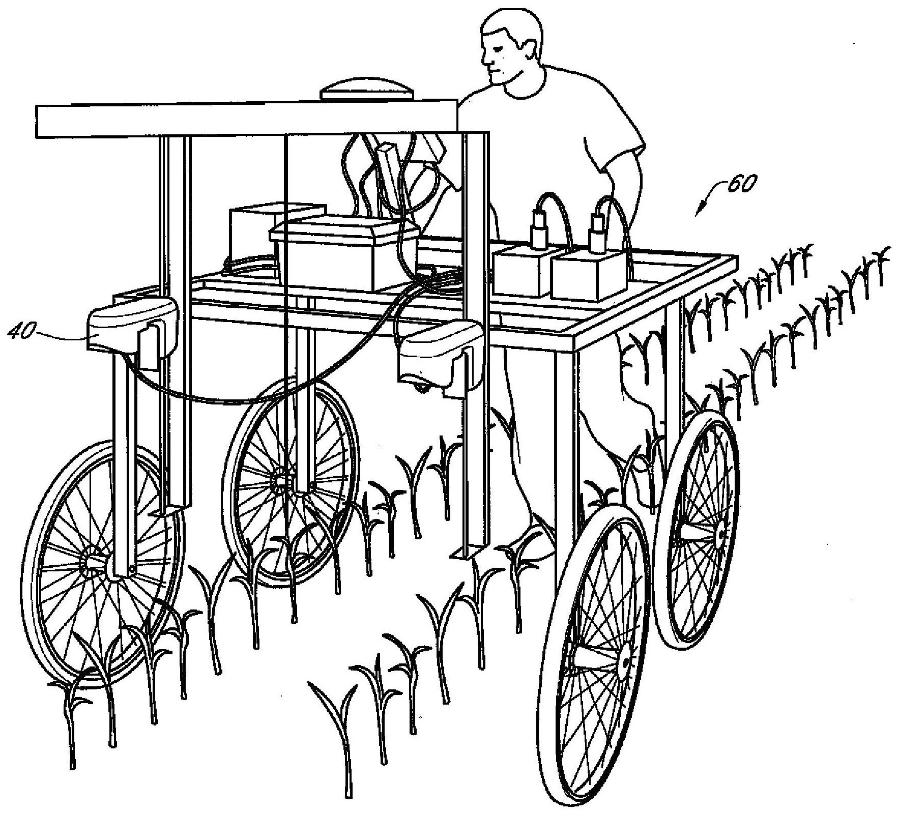 在此描述了一种用于评价植物的植物毒性和/或损伤的系统。将植物种植在多个行区域中,并且使用一个推车使辐射测量传感器越过这些行区域。该田用车具有一个定位在这些行区域的上方的辐射测量传感器组件。每个传感器组件产生一个数据信号,并且由一台计算机接受并存储这些数据信号。该田车被定位在这些行区域的上方并且测量在行区域中植物的存在以及在行区域中的植被的量。